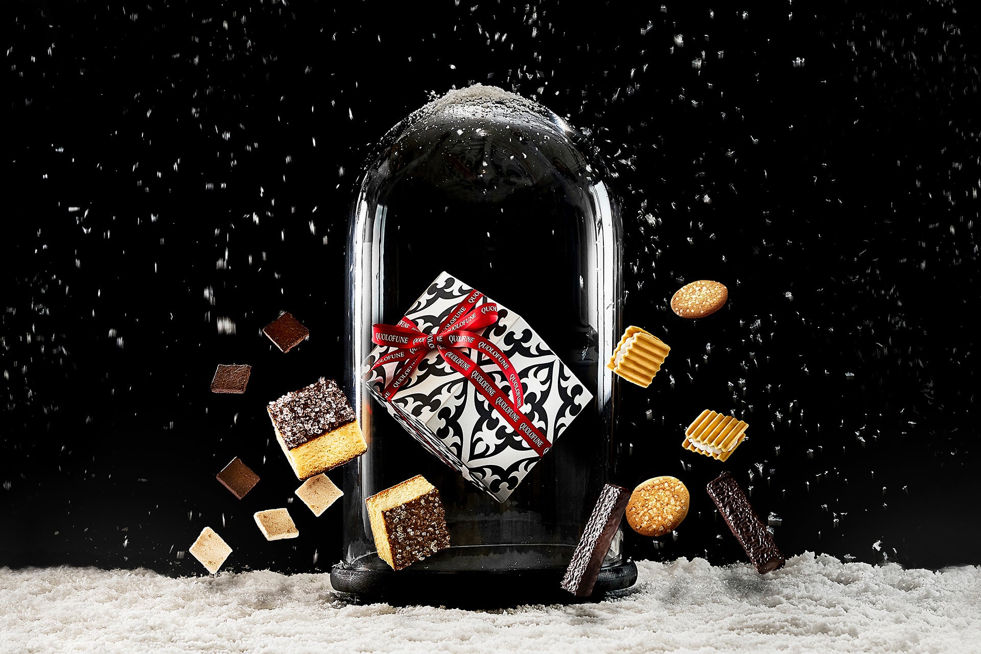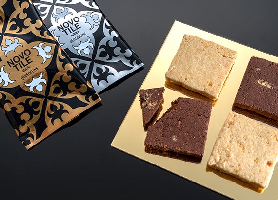 この季節におすすめのスイーツを詰合せた特別なボックス「Q-CUBE」と、街を彩るイルミネーションを彷彿とさせる、光る青いパッケージの「ノボタイル(ホリデーシーズン限定パッケージ)」をご用意いたしました。