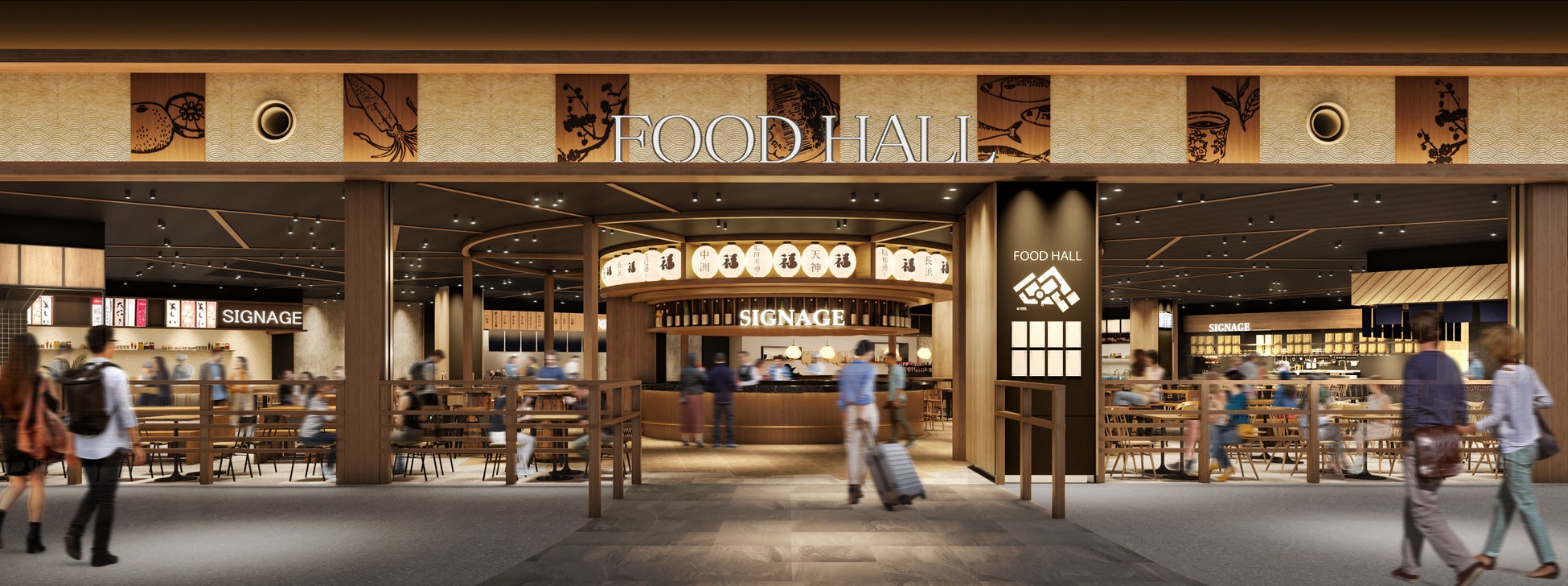 HAKATA FOOD HALLでは「福岡・九州の食文化を味わうゾーン」をコンセプトとし、賑やかな屋台街に個性豊かな8店舗が出店します。約300席の座席をご用意し、出発直前までゆっくりと福岡・九州の味と雰囲気を楽しんでいただける空間を提供します。インバウンドの方の満足度が高いメニューを取り扱うほか、居酒屋業態や休憩としてもご利用いただけるカフェ業態など、様々なニーズや利用シーンに対応したラインナップとなっています。