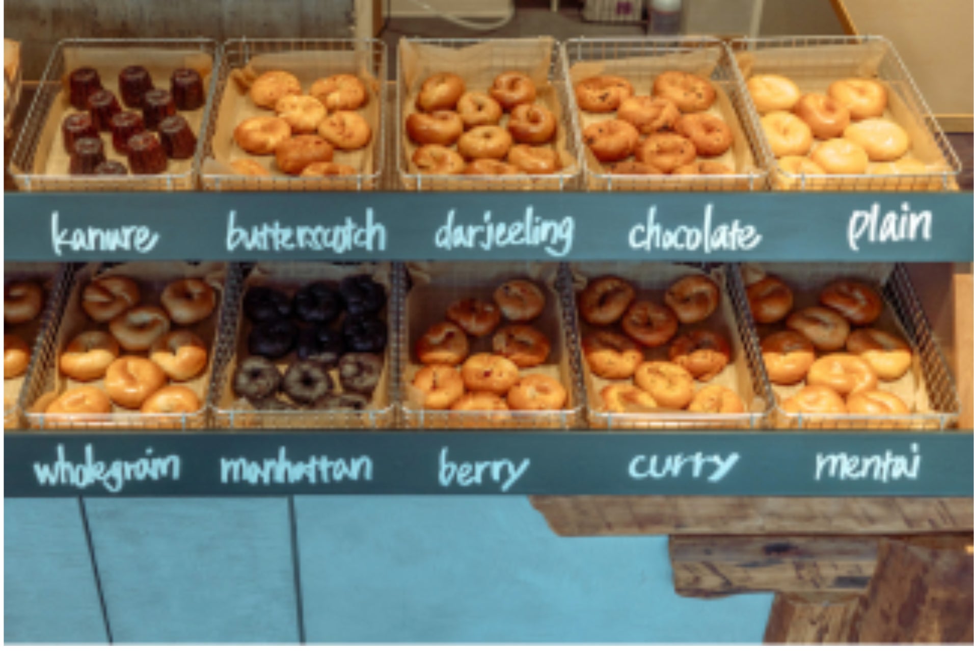 福岡ならではの明太子や疲れたときに嬉しいチョコレートなど、およそ10種類以上のベーグルを無料でお楽しみいただけます。