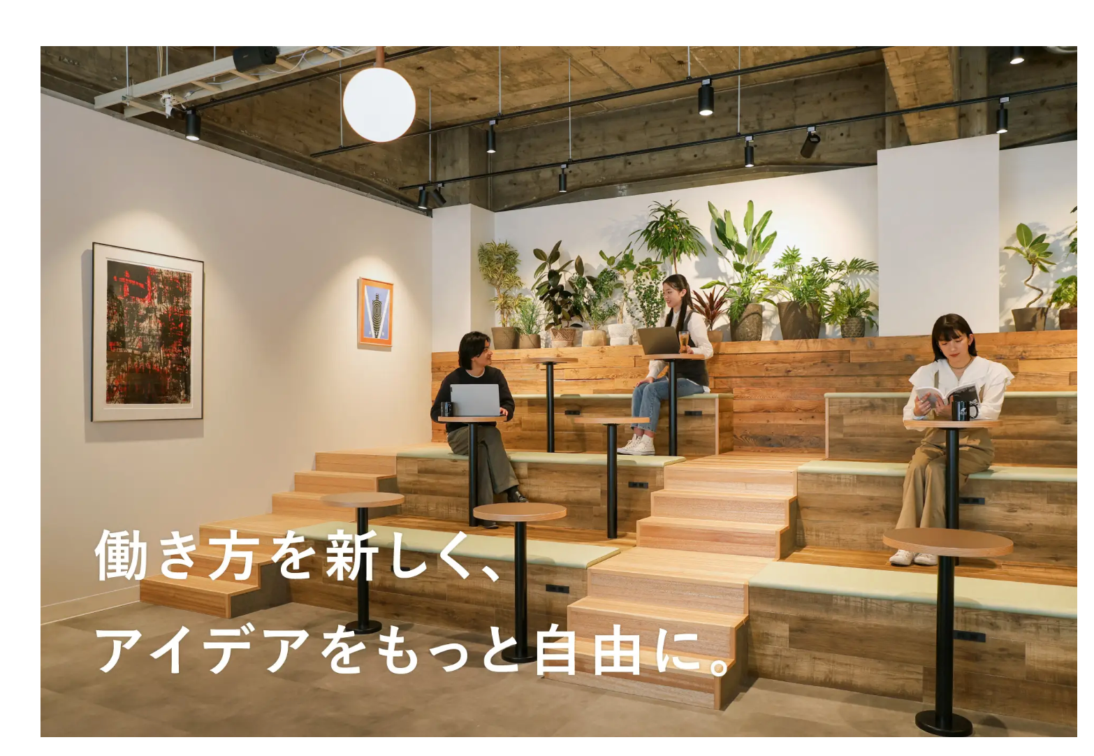 「the from」は、コワーキングスペースの機能性とカフェの心地よさを兼ね備えた、カフェスタイルのコワーキングスペースです。便利なオフィスとして、くつろげるカフェとして、親しい人と語らうバーとして、多様な目的でご利用いただけます。