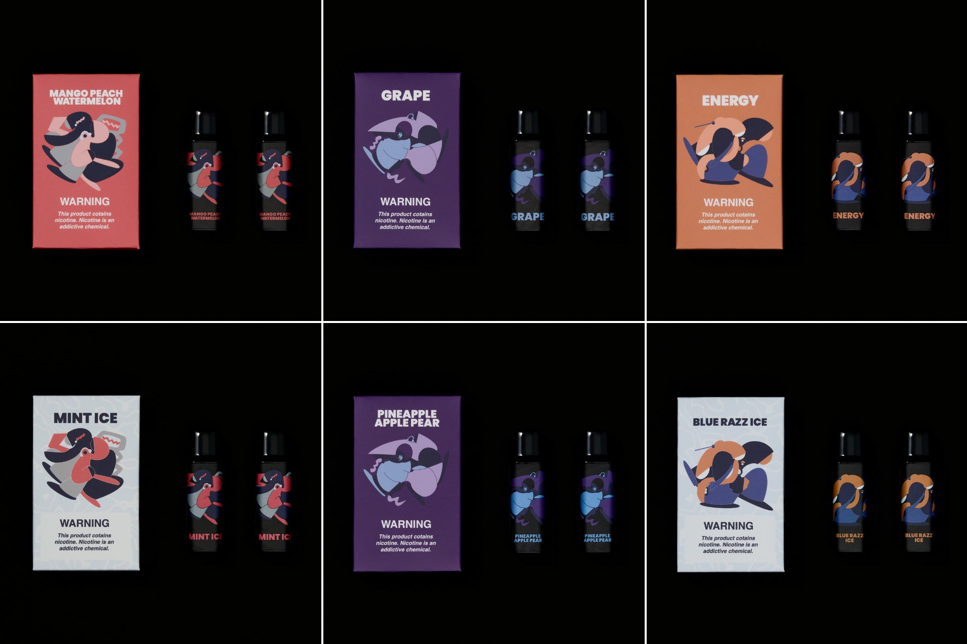 フレーバーの種類は、ニコチン6種類、ノンニコチン3種類を展開。フルーツ系や、ミント系、エナジー味などのドリンク系のフレーバーを取り揃えております。