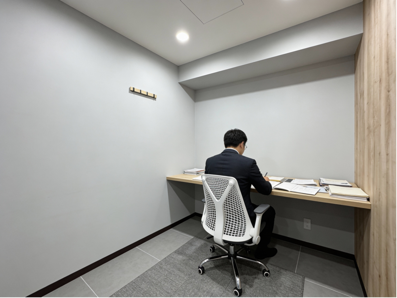 2.完全個室31室×全デスク幅150cm以上(通常は80cm〜90cm程度で倍)周囲が気にならない自分だけのプライベート空間で集中&リラックス。ゲスト同伴も可能。