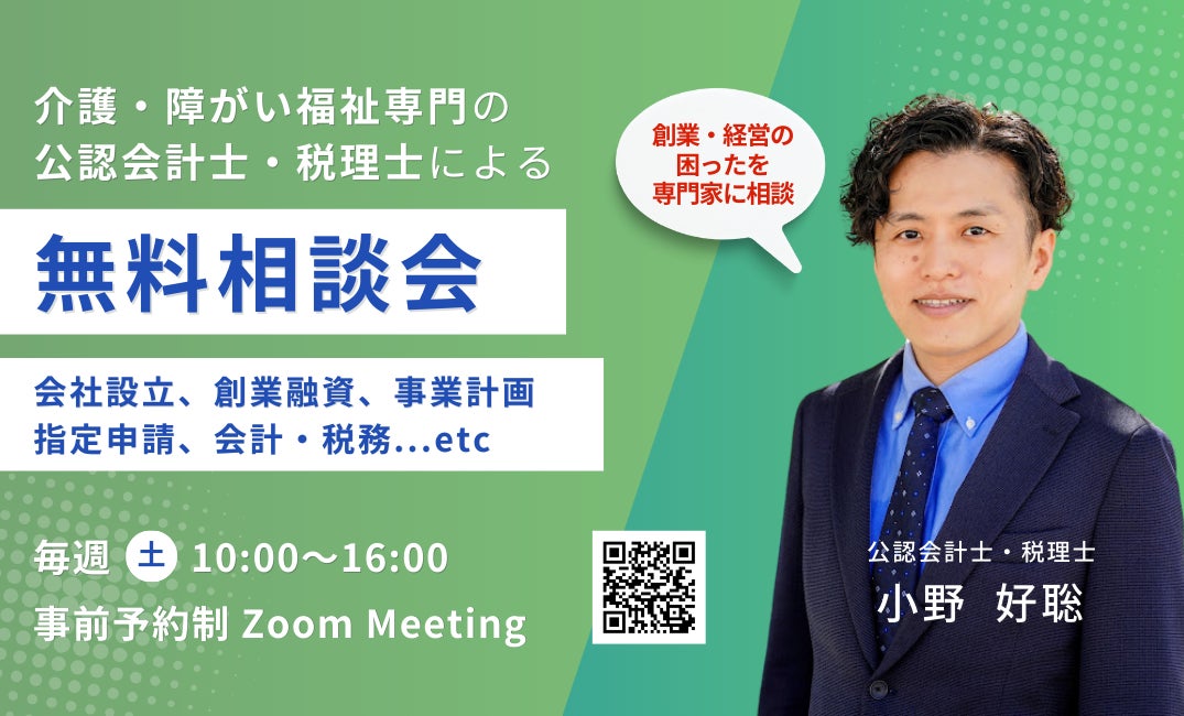 相談内容:創業に関するご相談(会社設立、創業融資、事業計画、指定申請など)、会計・税務に関するご相談など