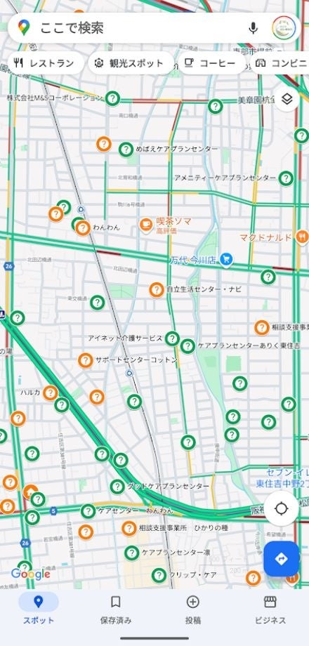 Googleマップとの連携: 各事業所の位置情報がGoogleマップにプロットされているため、地図上での確認やルート検索が容易に行えます。