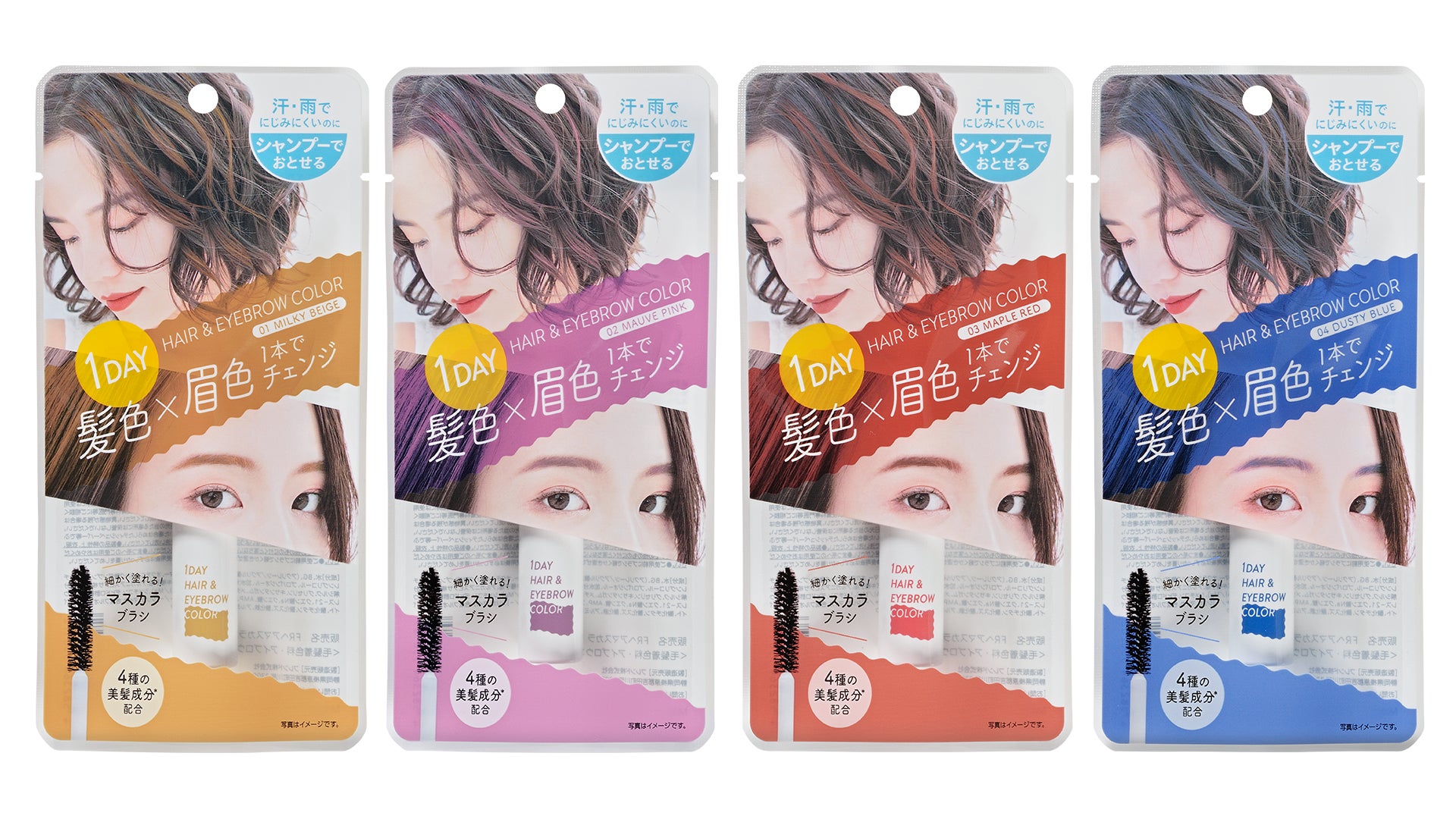 「髪」は印象を大きく左右するパーツであるものの、自由にカラーリングするにはハードルが高く取り入れられない方が多い現状に着目し、手軽に印象チェンジできる1dayヘア&アイブロウカラーを発売いたします。