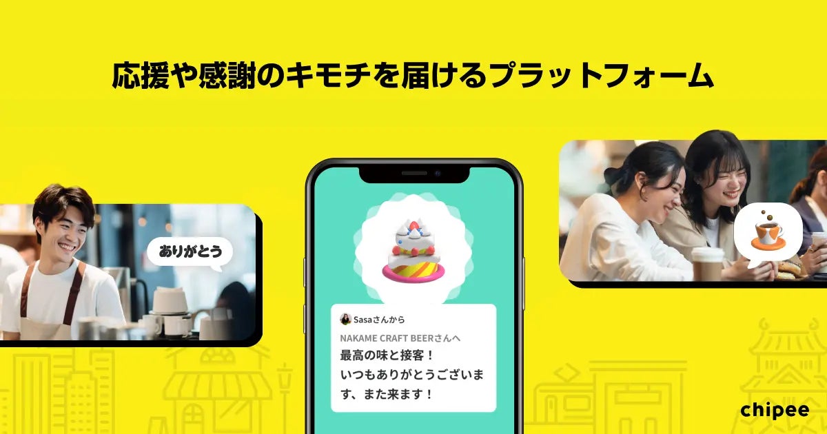 「Chipee」は、顧客から寄せられる感謝や応援のメッセージを通じて生まれるポジティブな感情を可視化し、それを企業や従業員へ届けます。この仕組みにより、顧客との関係性を深めてファンづくりを後押しするだけでなく、従業員のパフォーマンス向上やエンゲージメントの強化など、企業のウェルビーイング経営の実現にも貢献します。現在、ホテルや旅館などの宿泊施設をはじめ、飲食店、フィットネス、美容室、学習塾など多様な業種の企業で導入が進んでいます。