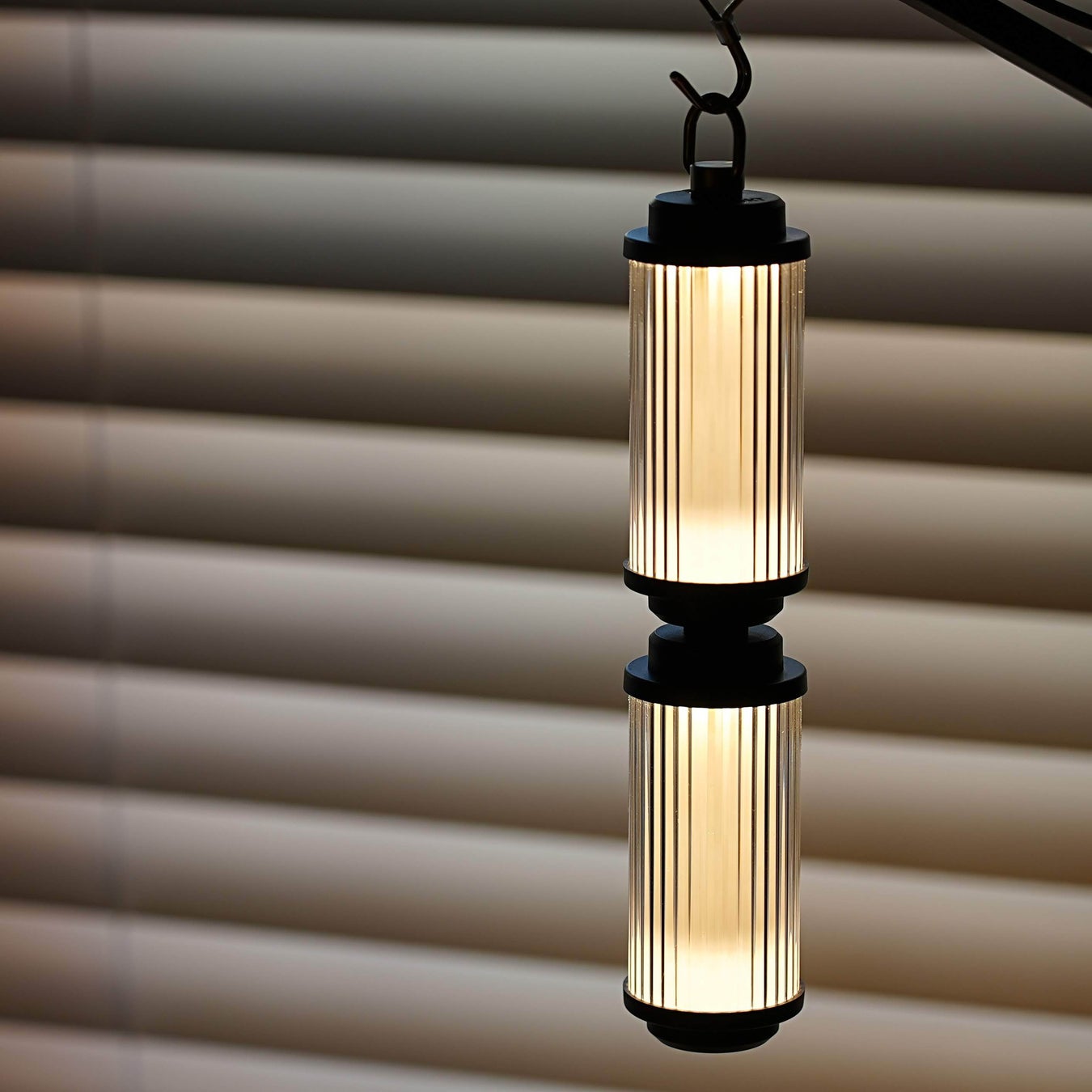輝度は200ルーメン。だだ、光源が見えにくい設計にしているので同じルーメンでも光源が見えるランタンと比べると少し暗く感じるかと思いますが、その分、夜中に点灯しても眩しすぎる事がありません。