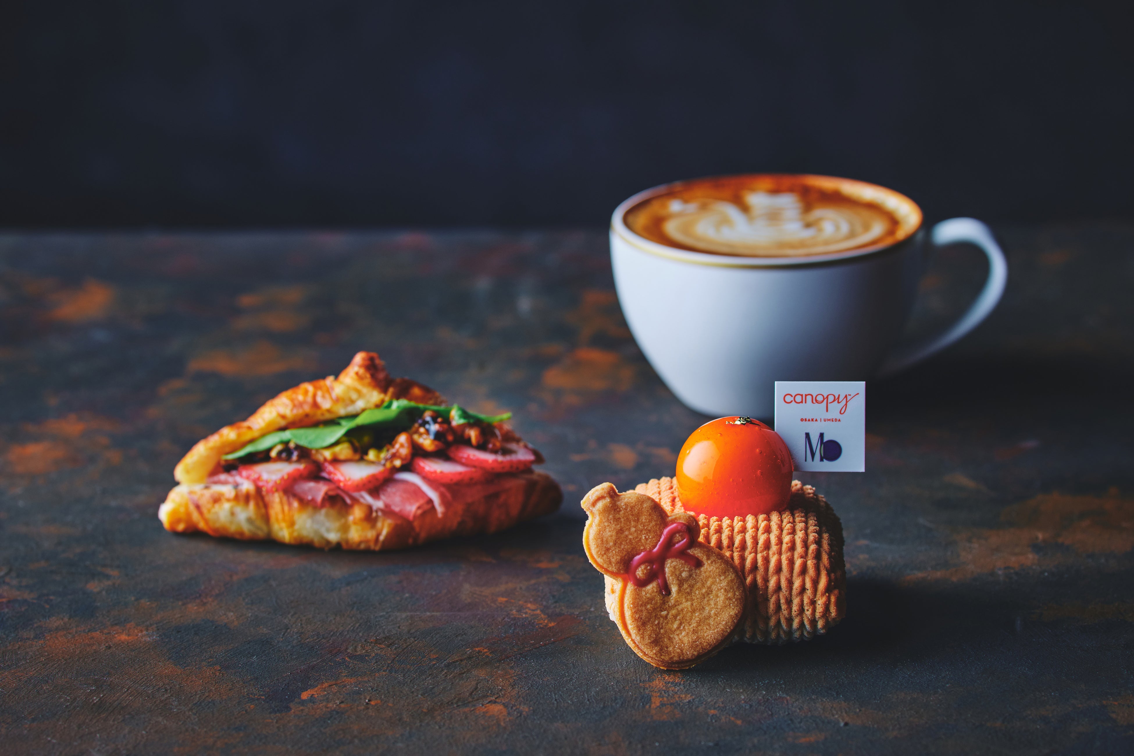 両品共に、地元の文化をスタイリッシュに取り入れるキャノピーbyヒルトン大阪梅田のアイコニックなモチーフ、豊臣秀吉の「千成瓢箪(せんなりびょうたん)」からインスピレーションを受けたクッキーを添えてお届けします。