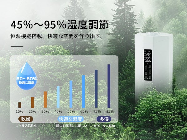 ・湿度は45%から95%の範囲で自由に設定でき、ニーズに合わせた快適な環境を提供します。