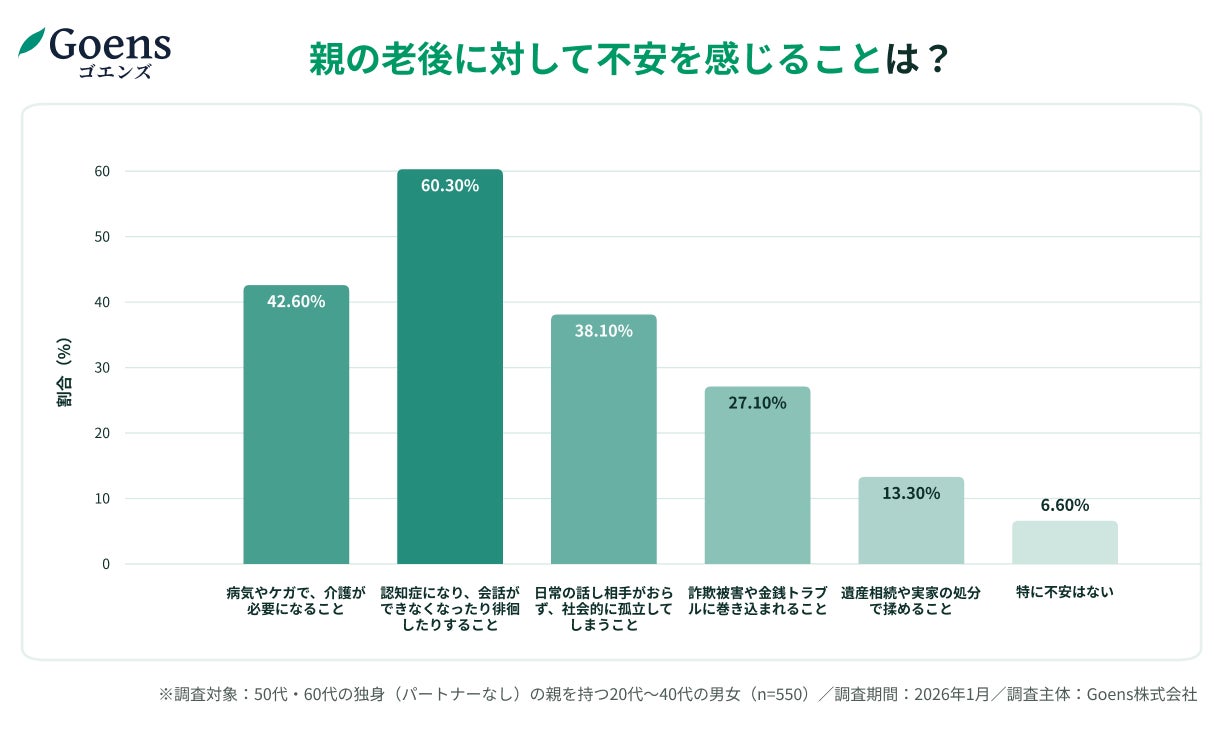 本調査から見えてきたのは、親の幸せを願いつつも、リスク管理を徹底したい子供世代のリアリズムでした。『Goens』は、こうした現代のニーズに応えるプラットフォームです。