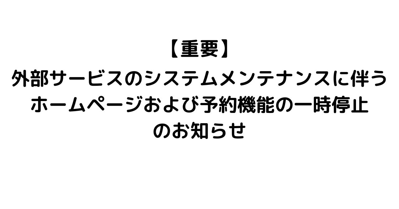 【重要】外部サービスのシステムメンテナンスに伴う ホームページおよび予約機能の一時停止のお知らせ