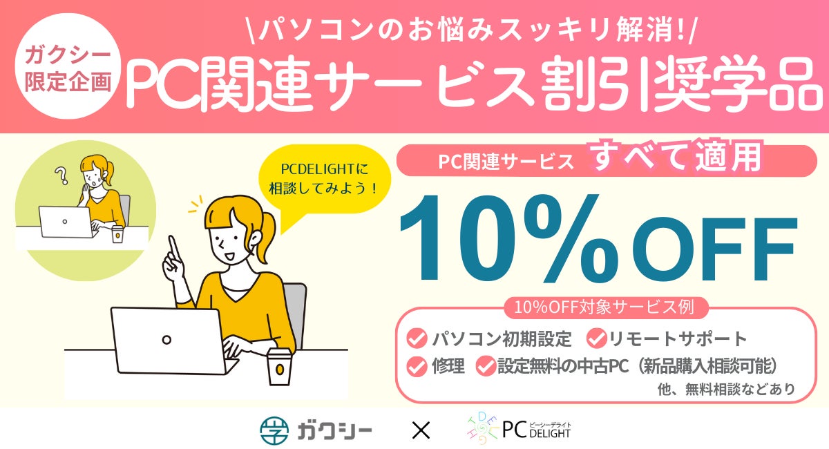『学生応援!』パソコン購入・初期設定の割引奨学品で支援へ【PCDELIGHT×ガクシー提携】