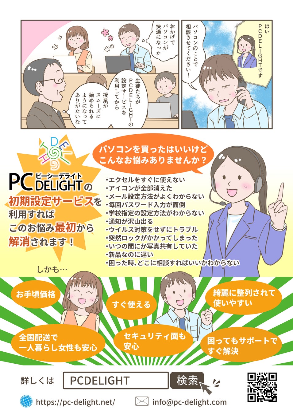 PCDELIGHT合同会社は、パソコン購入から設定、トラブル対応まで一貫したサポートを提供し、全国の学生が安心してICTを活用できる環境を整備しております。