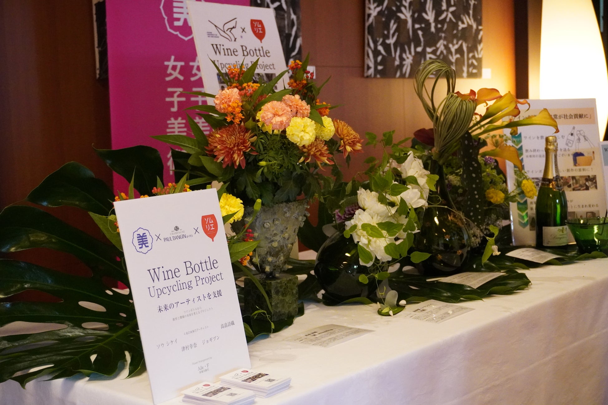 フランス大使館公邸にて開催されたフランスイベント。テーマは、「Art繋がりとなる“印象派”」。英国王室のシャンパーニュ「ポール・ダンジャン」のボトルで学生が作ったアート作品を展示。