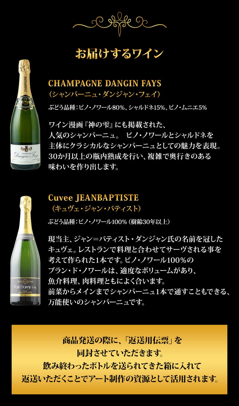 シャンパーニュ12本 (ブリュット・ダンジャン・フェイ6本/キュヴェ・ジャン・バティスト6本)