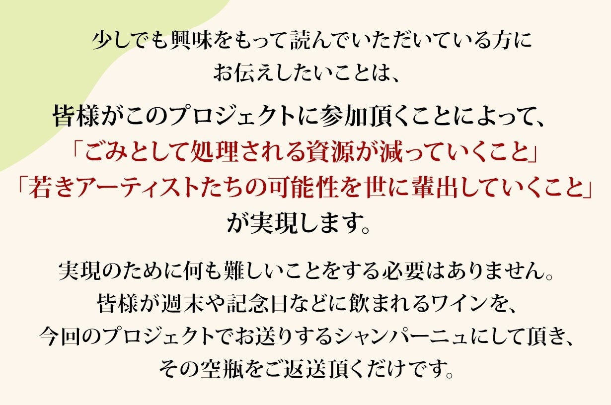あなたが飲んだワインのボトルをアートの力で生まれ変わらせる<産学連携SDGsプロジェクト>Makuakeにて公式サポーターを募集開始!