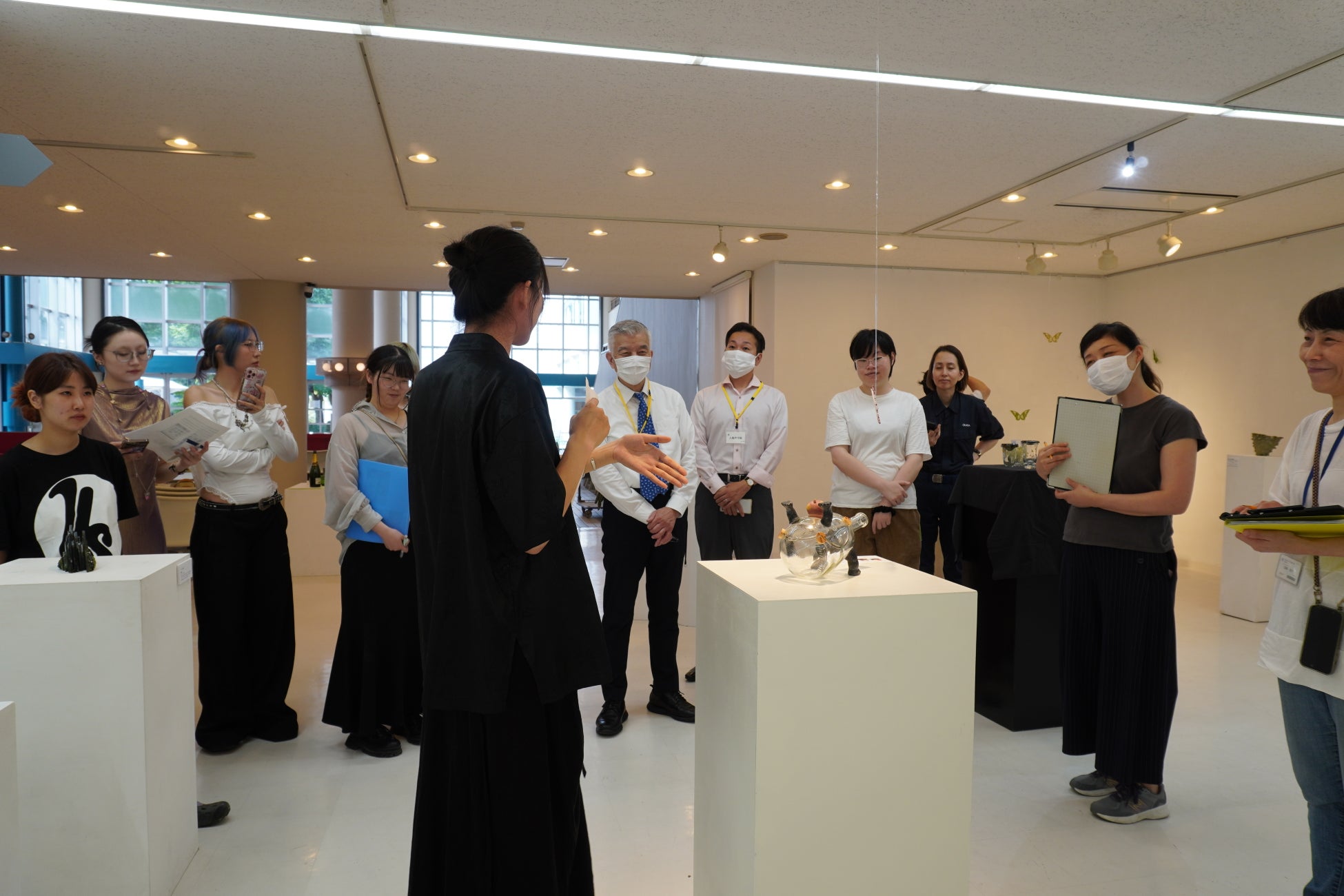 ワインボトルリサイクルプロジェクトのスタートとして、女子美術大学の芸術学部デザイン・工芸学科工芸専攻ガラス分野の学生12名により、ワインボトルの素材を用いた作品の創作と、そのお披露目として女子美術大学・相模原キャンパス内にある「SWITCHLabo」にて作品の講評会を開きました。