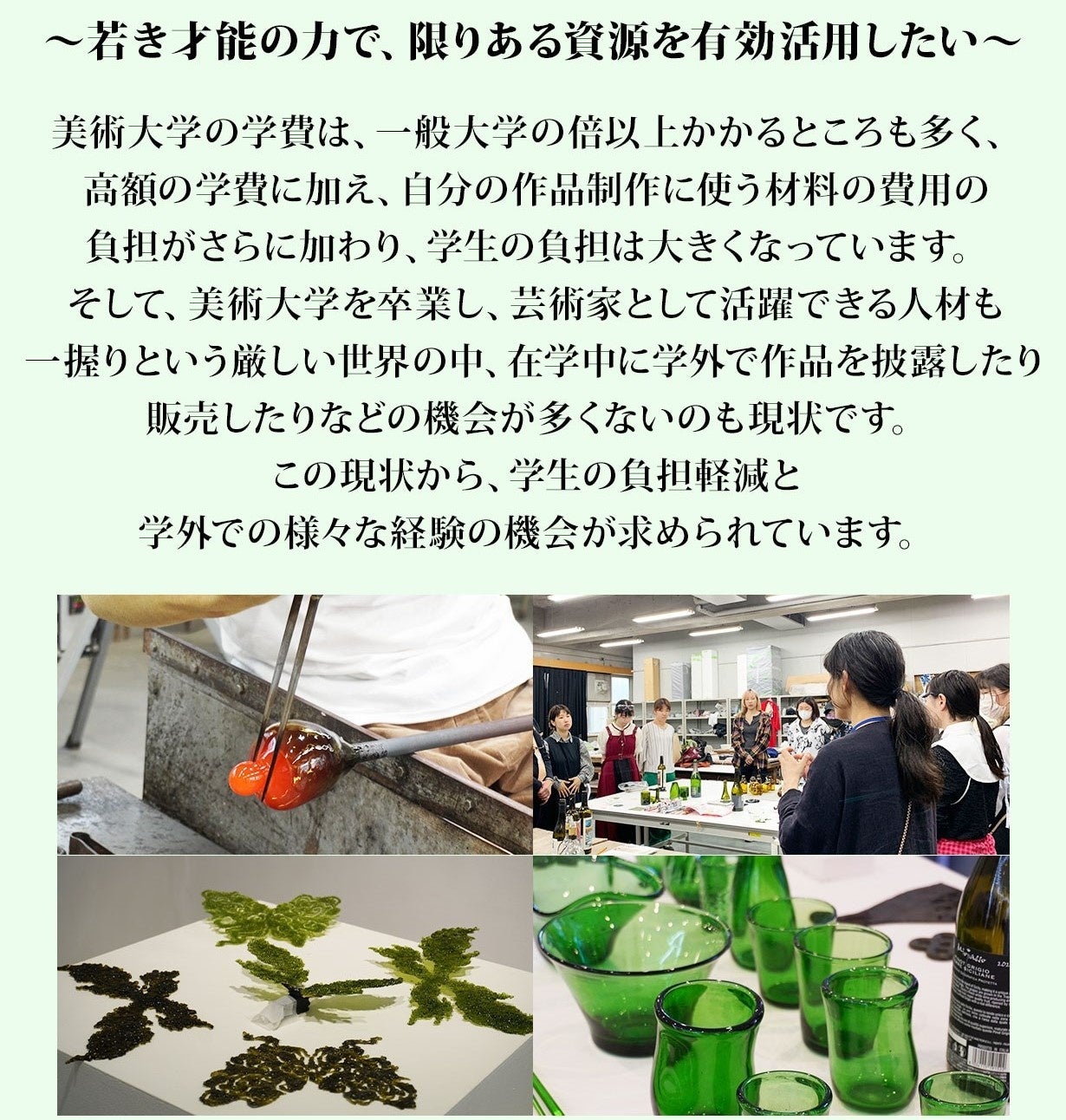 “ワインボトルの素材に初めて挑戦し、難しい部分が多く苦戦したが、もっと挑戦したいことがある。次はもっとこうしてみたい。”