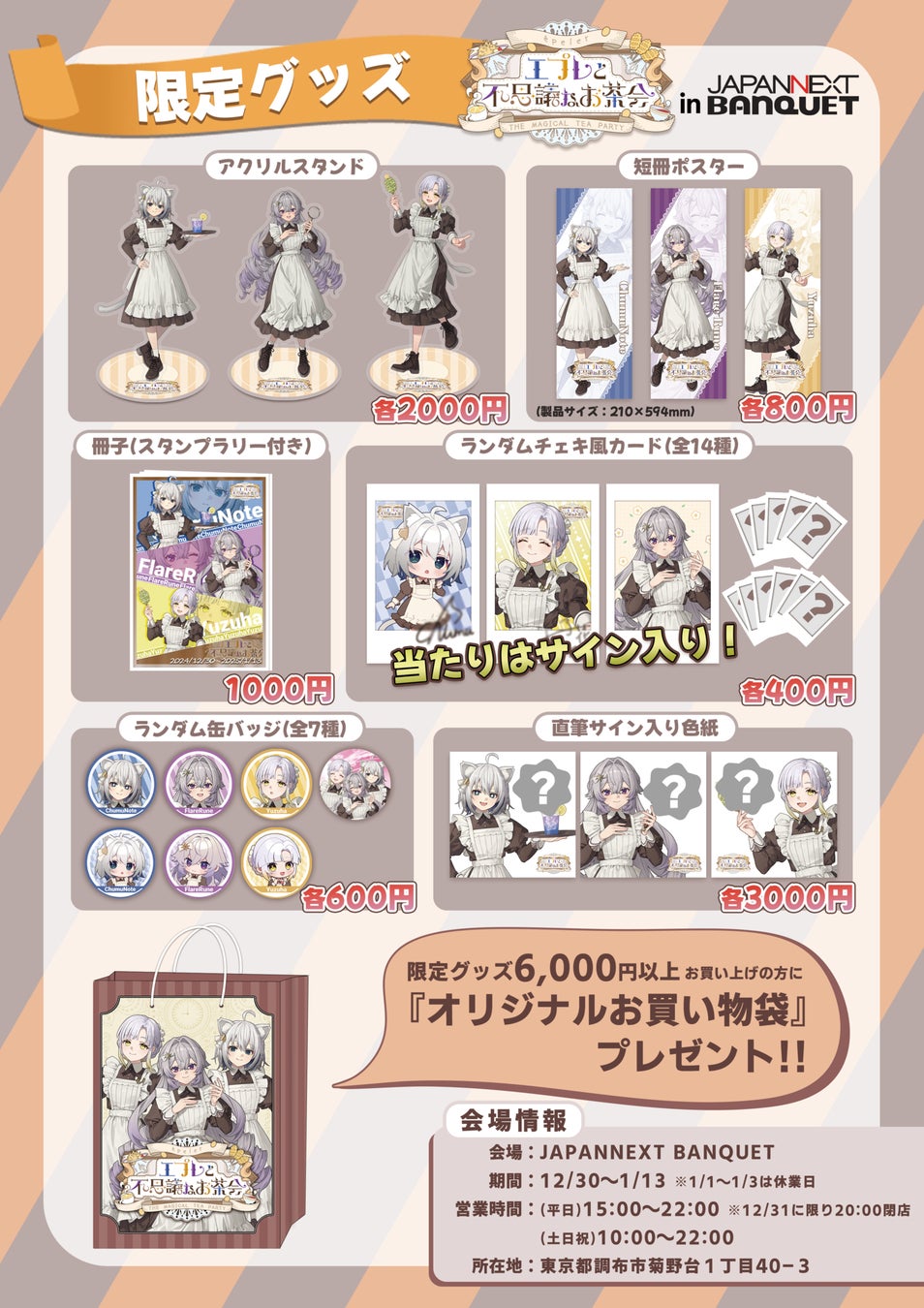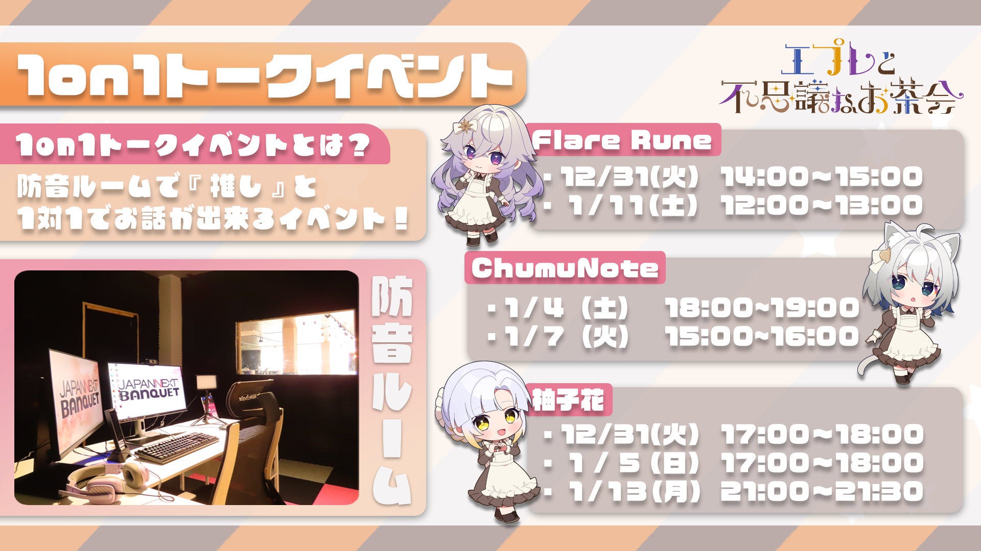 合同会社RadicalPopGamingが運営するJAPANNEXT BANQUETは、3人組バーチャルアイドルユニットépeler(エプレ)とコラボレーションし、12月30日(月)よりPOP UP STORE『エプレと不思議なお茶会』を開催いたします。
