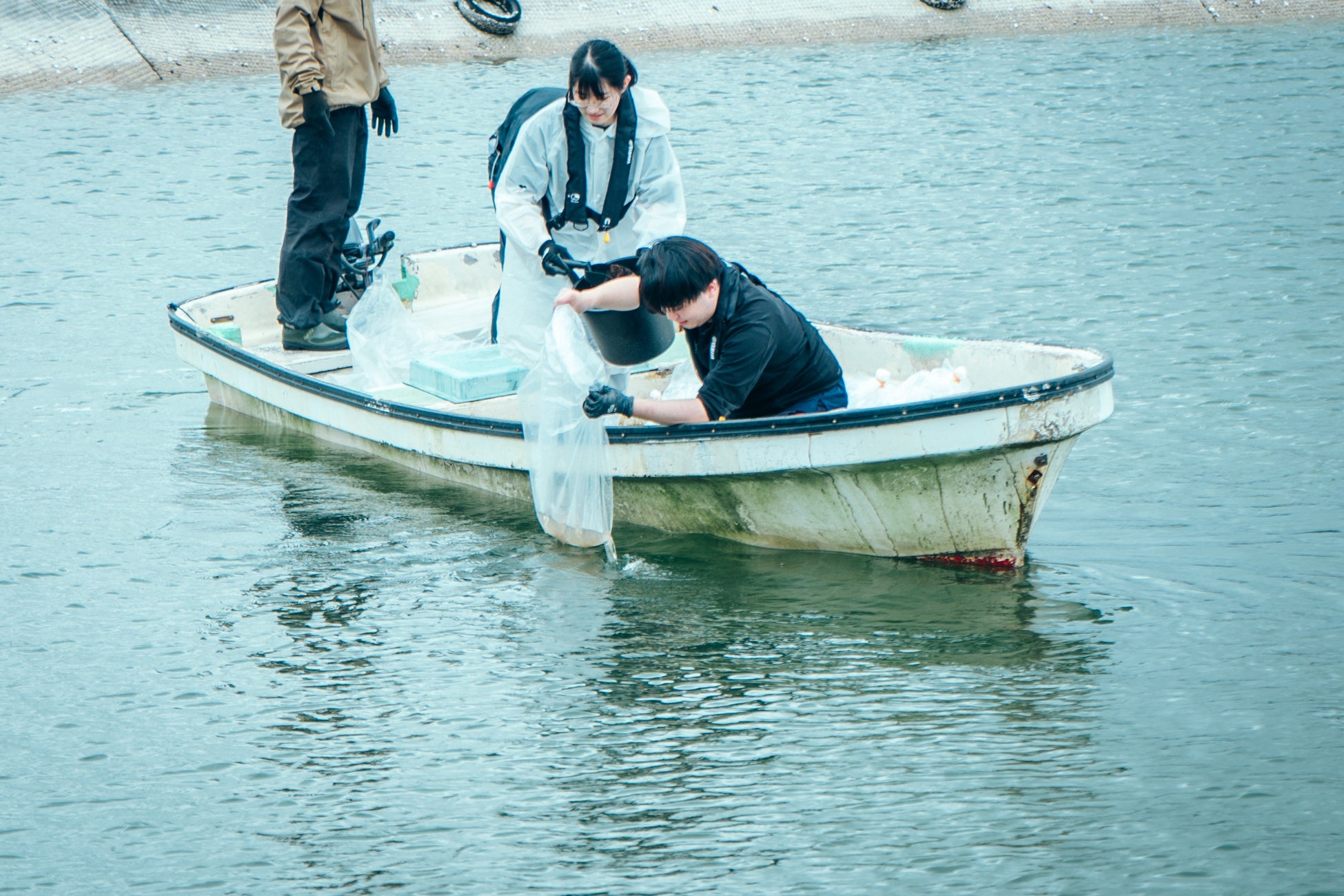 また、CWPでは、養殖現場の作業性・安全性を改善。重機や潜水作業に頼らない養殖スタイルを確立し、道具や作業手順も小型・簡便化することで、体格や体力に左右されにくい労働環境を整備しました。養殖期間中(6〜11月頃)は、遠隔オペレーションと省力化の仕組みにより、1日あたりの現場作業時間は1時間程度に削減。原則1名で現場運営が可能な体制となっています。