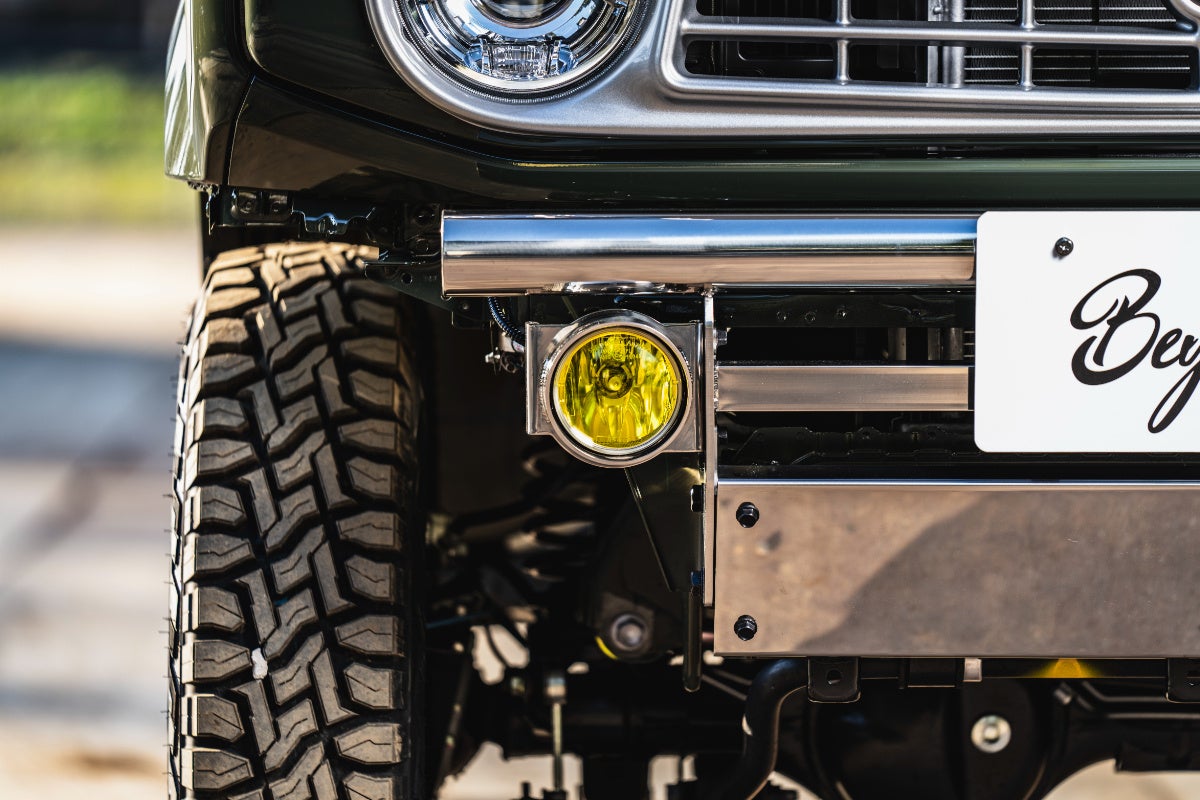 耐久性のあるパイプ形状でジムニーカスタムの王道を表現。車幅に対して短めの設計が特徴で、