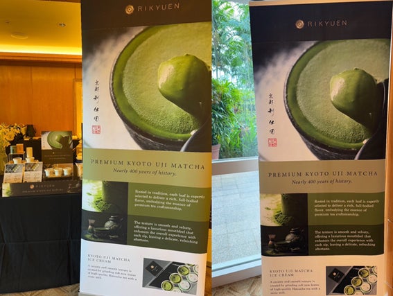2025年2月27日(木) シンガポール日本国大使館主催により、ザ・リッツ・カールトン・ミレニア・シンガポールで開催された「令和6年度天皇誕生日祝賀レセプション」にて「京都利休園」のプレミアム抹茶・抹茶アイスを商品紹介。