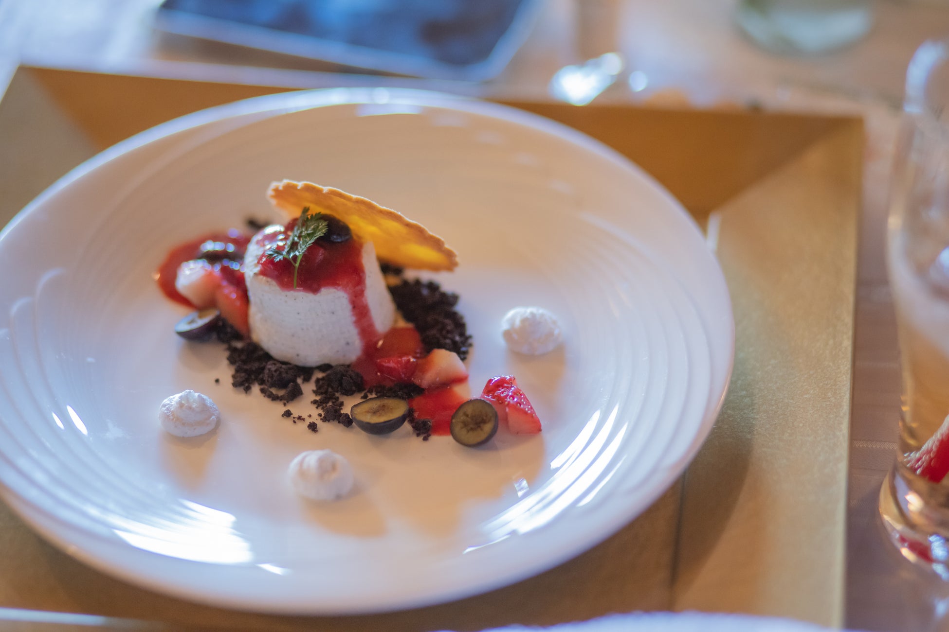 “フレンチ奥村邸”ならではの創作フレンチは、旬の地元食材を活かし、和の要素も織り交ぜた華やかな料理。