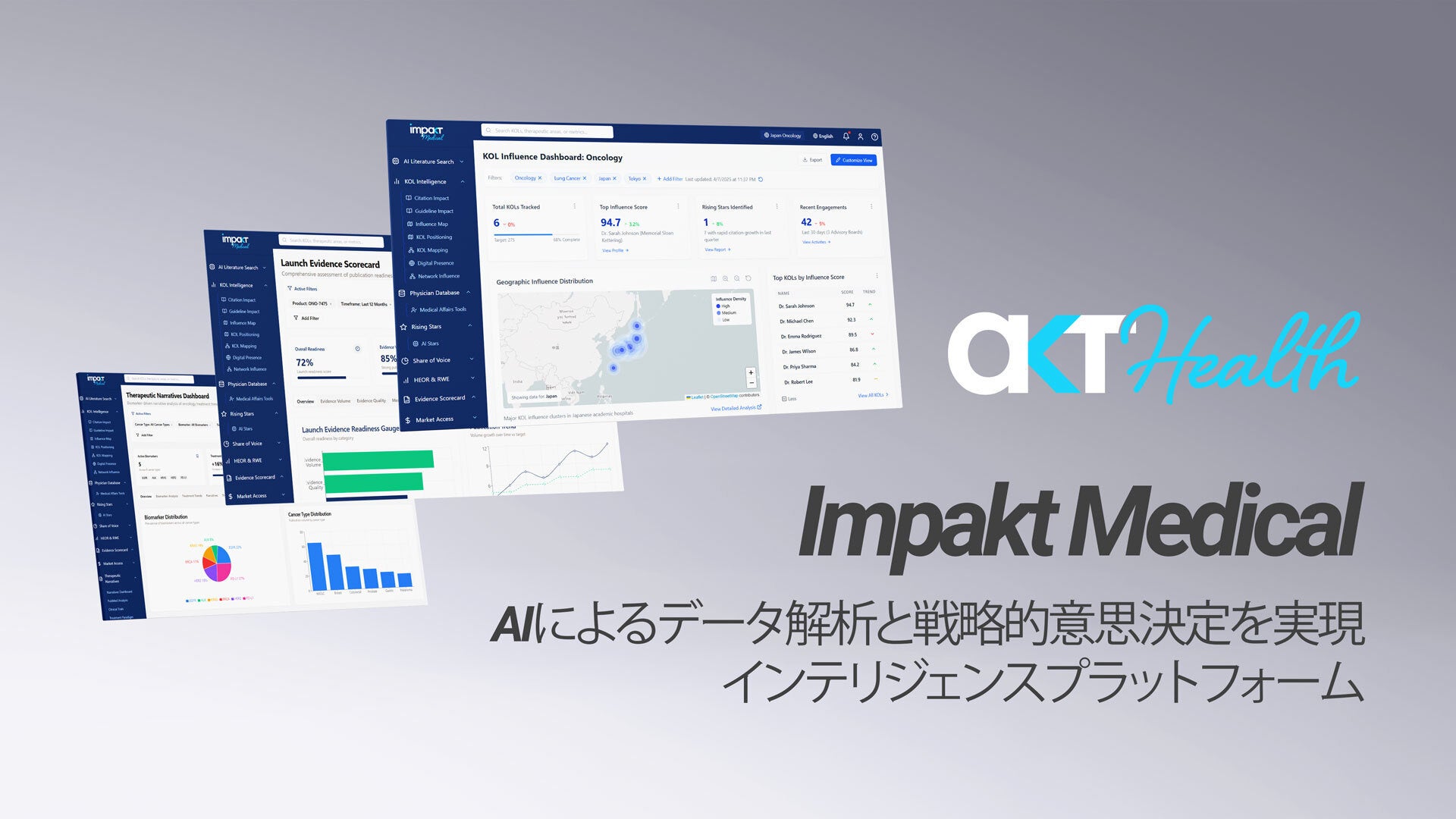 AKT Healthは、日本のメディカルアフェアーズの未来を形作ることを目的とした業界最大級のイベント「JAPAN MEDICAL AFFAIRS SUMMIT 2025」(2025年4月16日~17日@東京日本橋)にブースを出展します。会期中は、当社ブース(会場入口正面:No.8)にて「Impakt Medical」を直接体験いただけます。