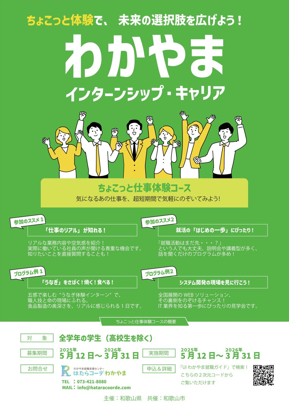 「わかやまインターンシップ・キャリア」参加者募集中!選べる2コースで気軽に“働く”を体験