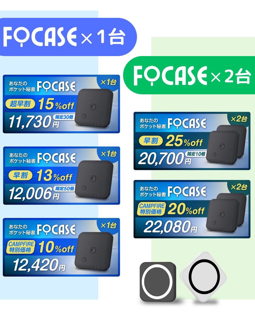 前回のプロジェクトでFoCaseを手に入れられなかった方々にとって、今回が最後のチャンスとなります。アンコールプロジェクトでは、前回同様、早期支援者向けの特別割引や、数量限定のスペシャル特典を多数ご用意しております。スマートなボイスレコーダーをお探しの方、ぜひこの機会にご支援ください!