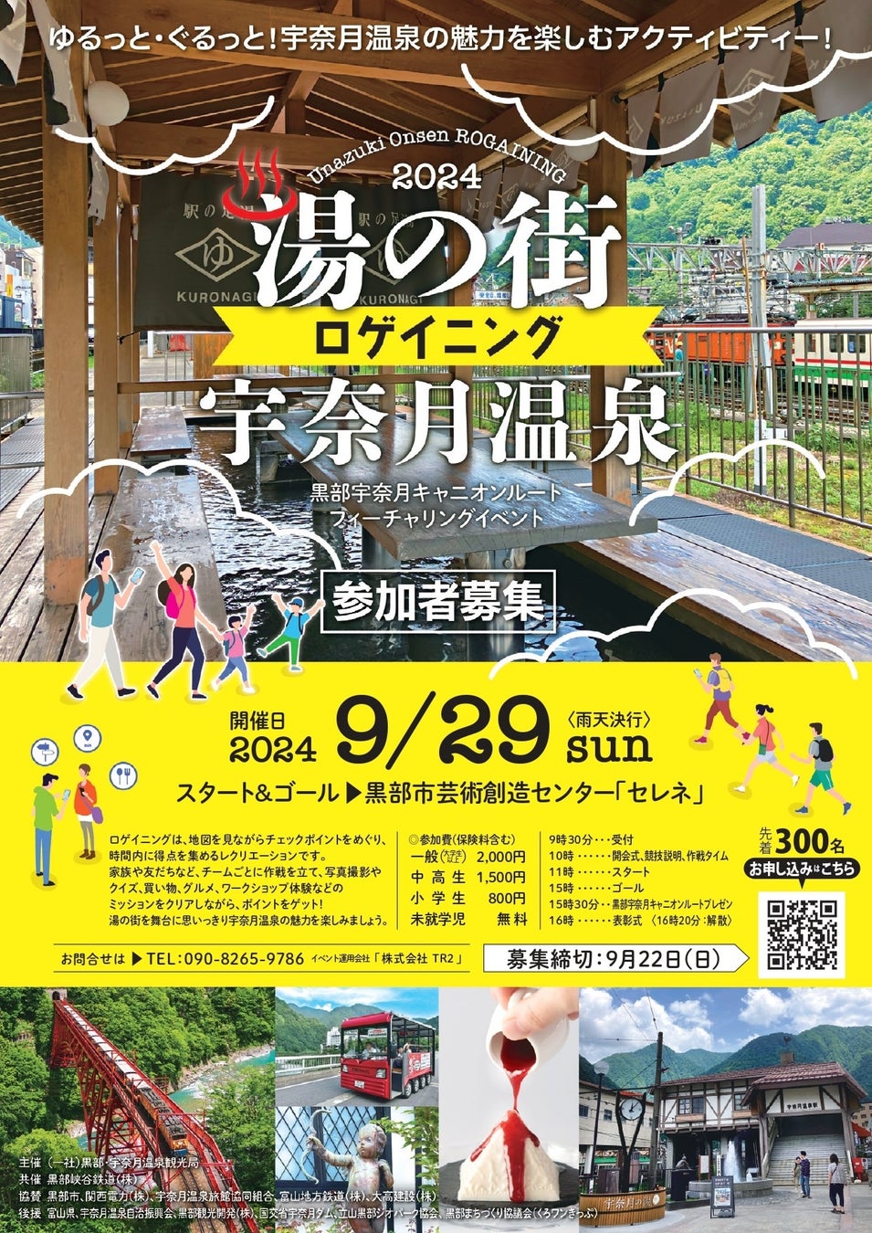 黒部峡谷鉄道株式会社(運営:黒部峡谷鉄道株式会社、所在地:富山県黒部市、代表取締役社長:鈴木 俊茂)では、2024年9月29日に「湯の街ロゲイニング宇奈月温泉」を共催いたします。(主催:(一社)黒部・宇奈月温泉観光局)