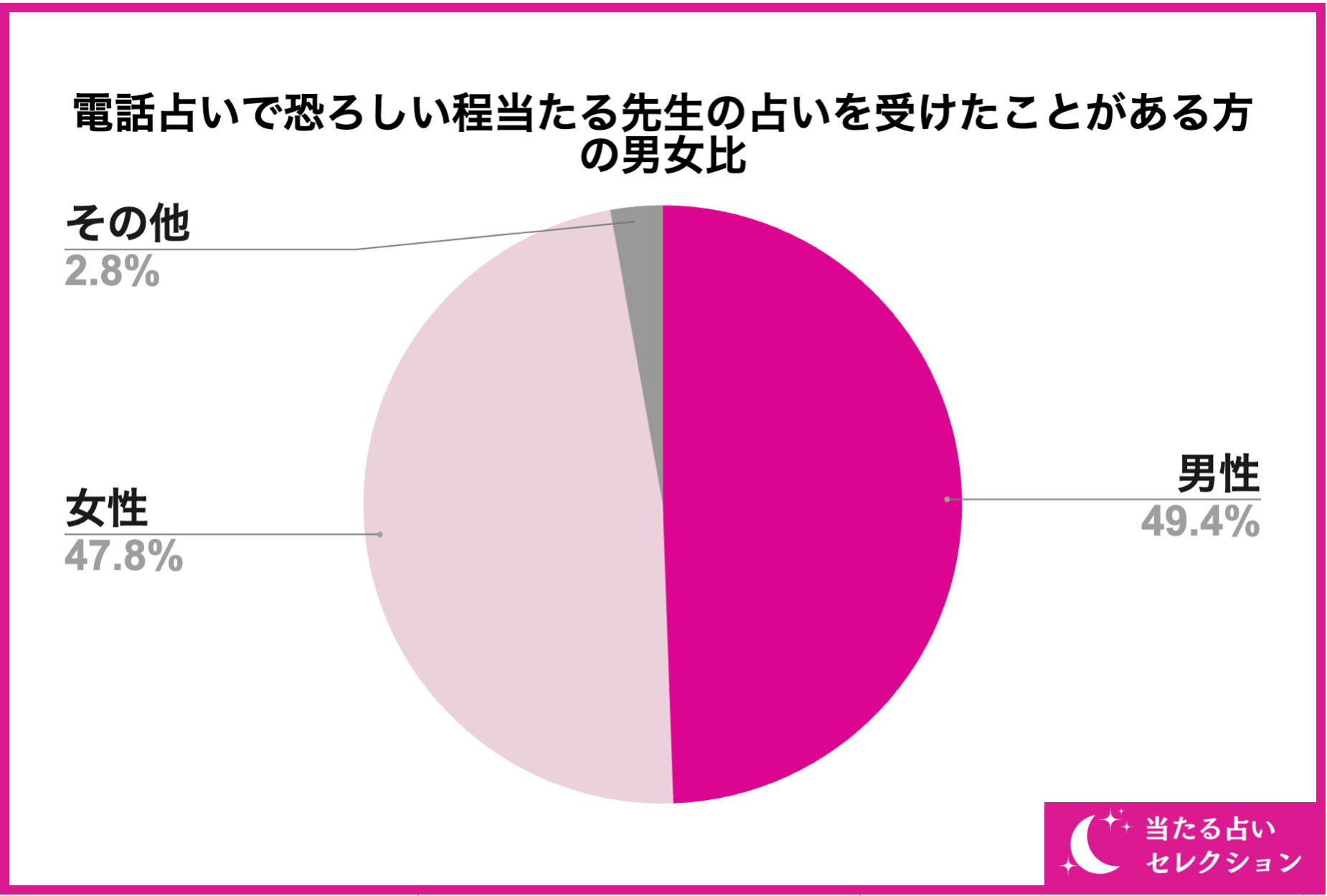 電話占いで恐ろしい程当たる先生の占いを受けたことがある方の男女比について