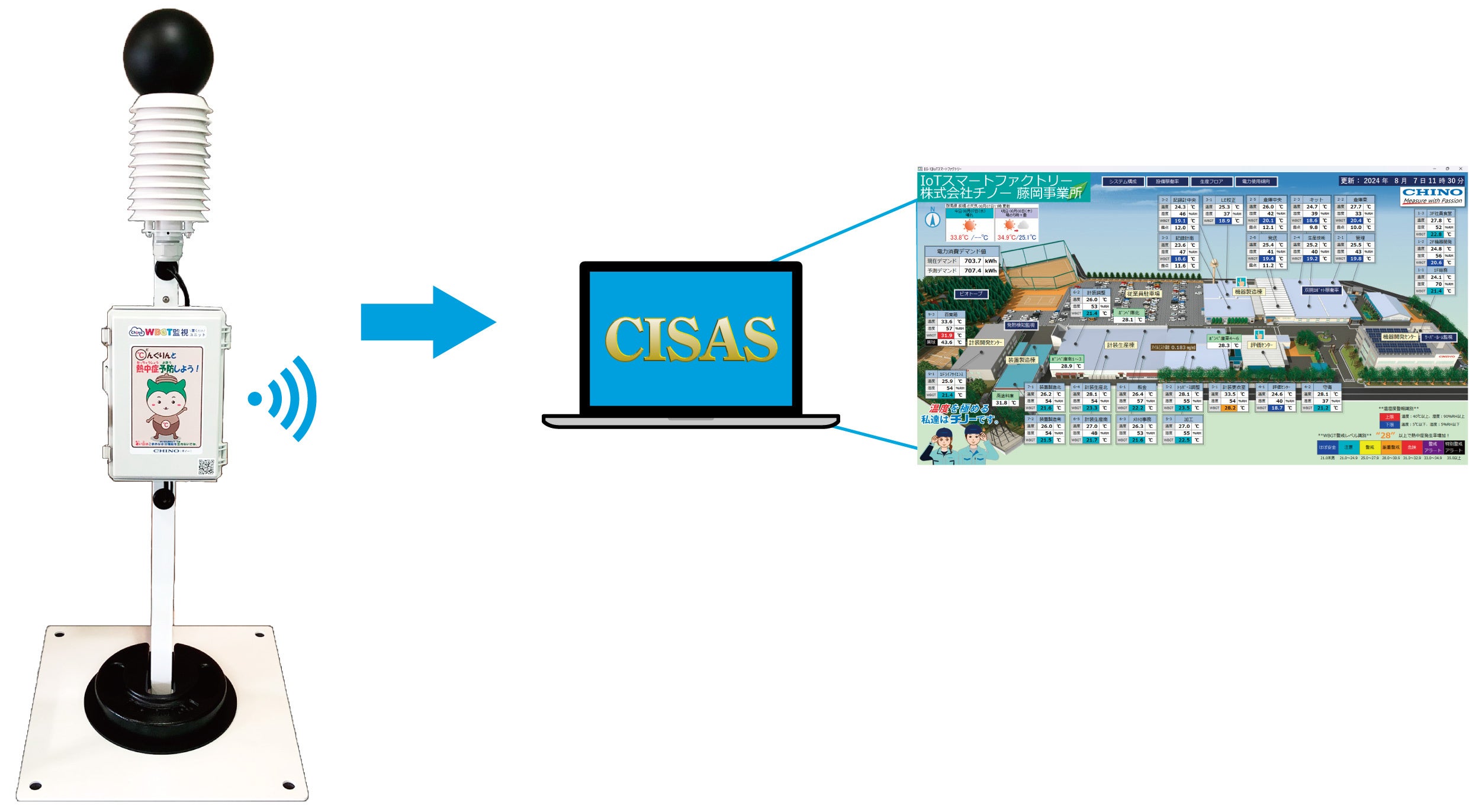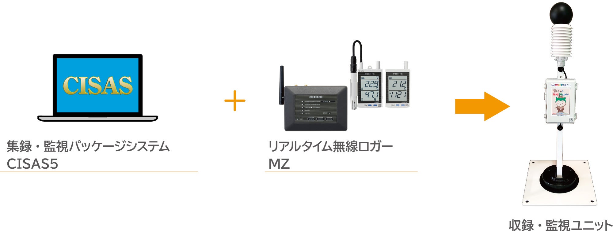 こちらも今回ご紹介した「熱中症監視システムトライアルキット」同様にデータ集録・監視パッケージソフトウェア CISAS 5」と「リアルタイム無線ロガー MZシリーズ」を組み合わせたシステムとなります。