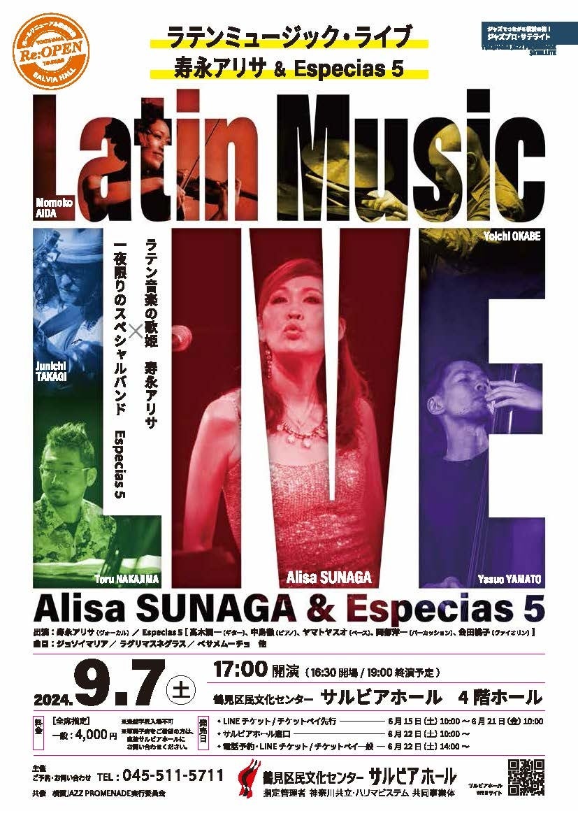 ラテン音楽の歌姫 寿永(スナガ)アリサと世界で活躍するトップミュージシャン5人のスペシャルバンドEspecias5(エスペーシアスファイブ)