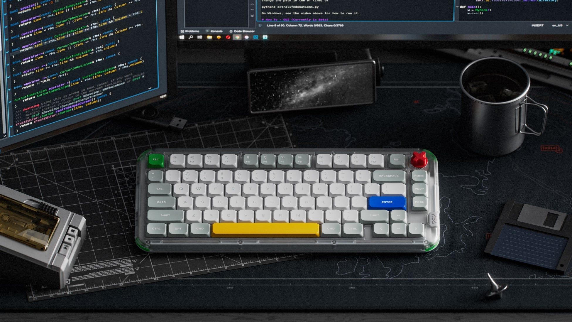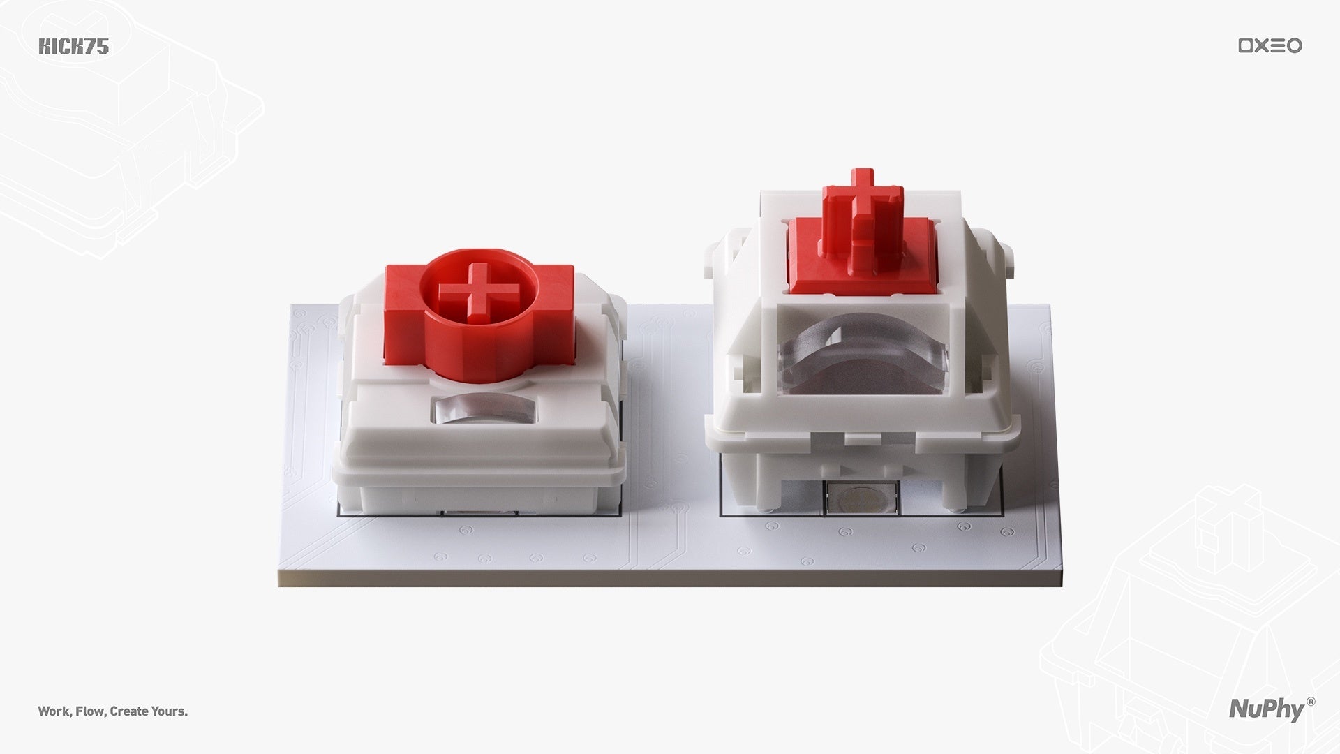 Kick75(キック75)はノーマルプロファイル・ロープロファイルの互換デザインを採用した世界初のハイブリッドプロファイルキーボードです。GateronとNuPhy共同開発の新世代スイッチ:Maxスイッチをノーマルプロファイルに、Nanoスイッチをロープロファイルに搭載し、ユーザーに滑らかな打鍵感と心地よい打鍵音で卓越したタイピング体験を提供します。