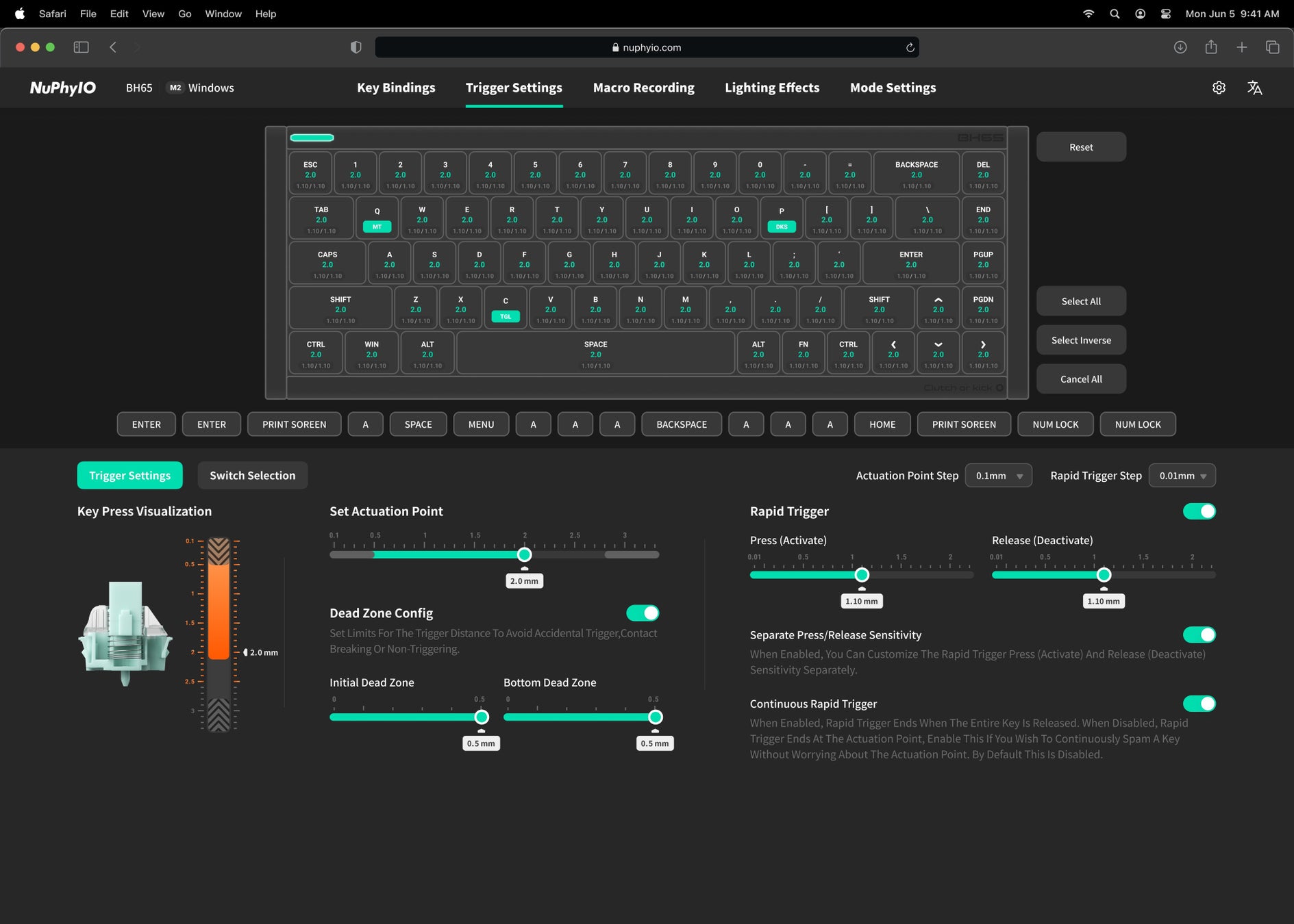 そしてBH65の性能はわずか0.125msの遅延時間、16000Hzのスキャンレート、8000Hzのポーリングレートにより、まるで「意識より速く」入力が反映されるハイエンドな打鍵体験を実現します。