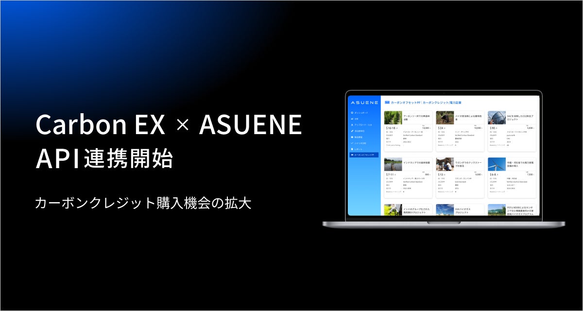 カーボンクレジット取引プラットフォーム「Carbon EX」と、CO2排出量見える化・削減クラウド「ASUENE」がAPI連携を開始