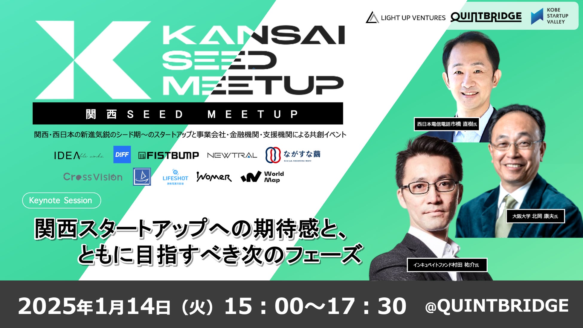● 関西発の独立系ベンチャーキャピタルのライトアップベンチャーズ株式会社(大阪府大阪市/代表取締役:中村忠嗣/以下LUV)は、関西・西日本で活動する、シード期のスタートアップの事業展開を加速させるため、関西の事業会社・金融機関・支援機関等とのマッチングを目的としたミートアップ『KANSAI SEED MEETUP』を開催いたします。