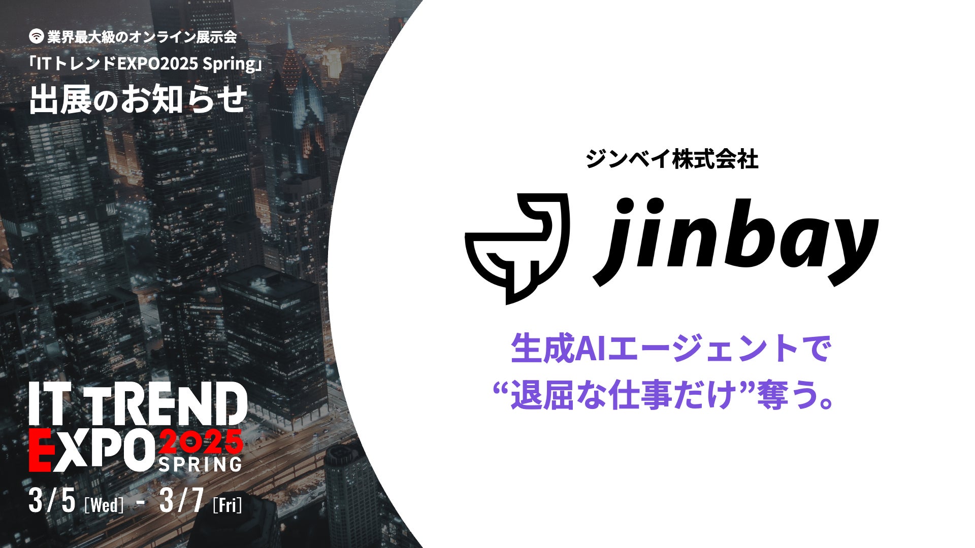 ジンベイ、業界最大級のオンライン展示会「ITトレンドEXPO2025 Spring」に【生成AIエージェント】を出展