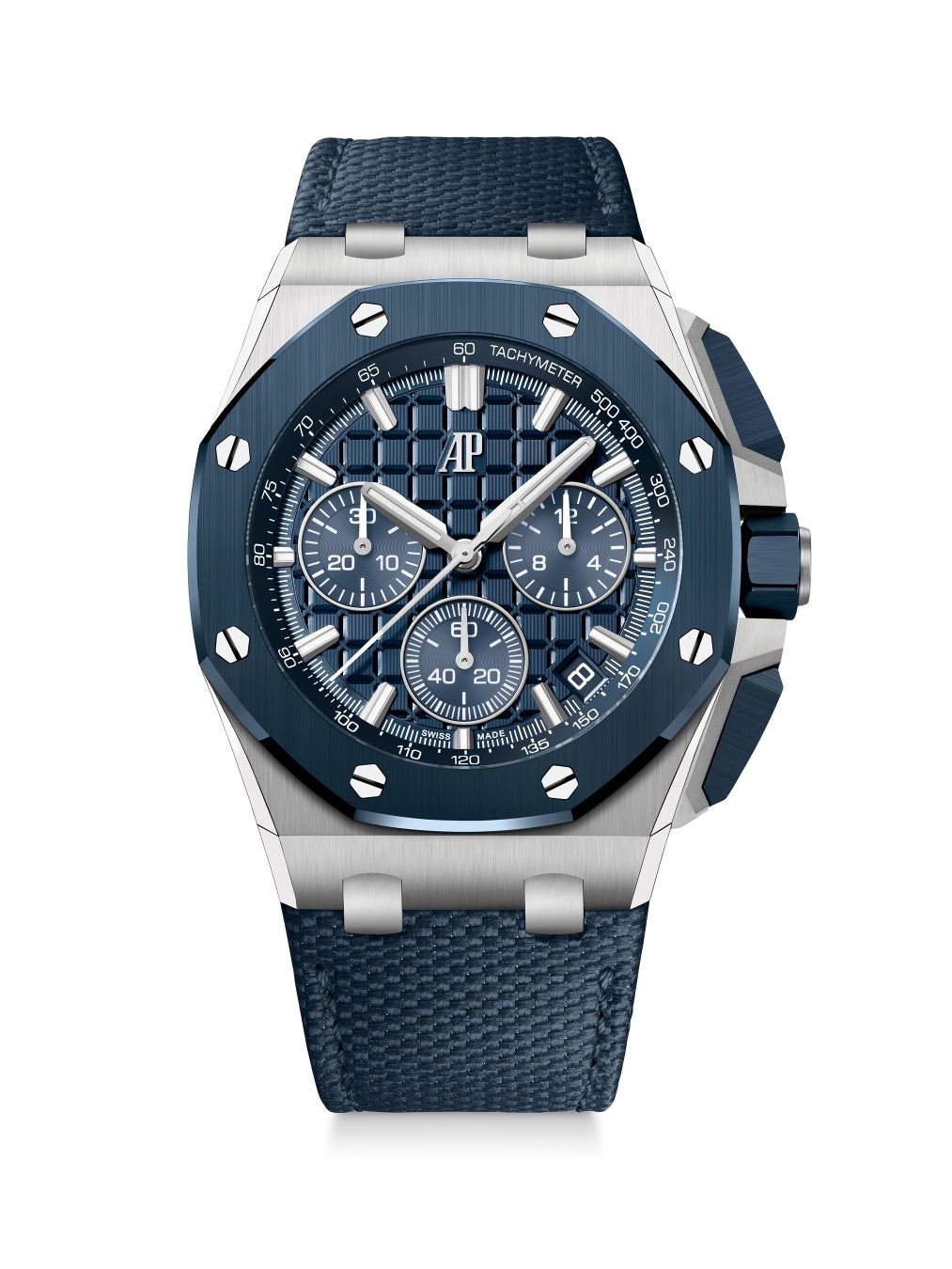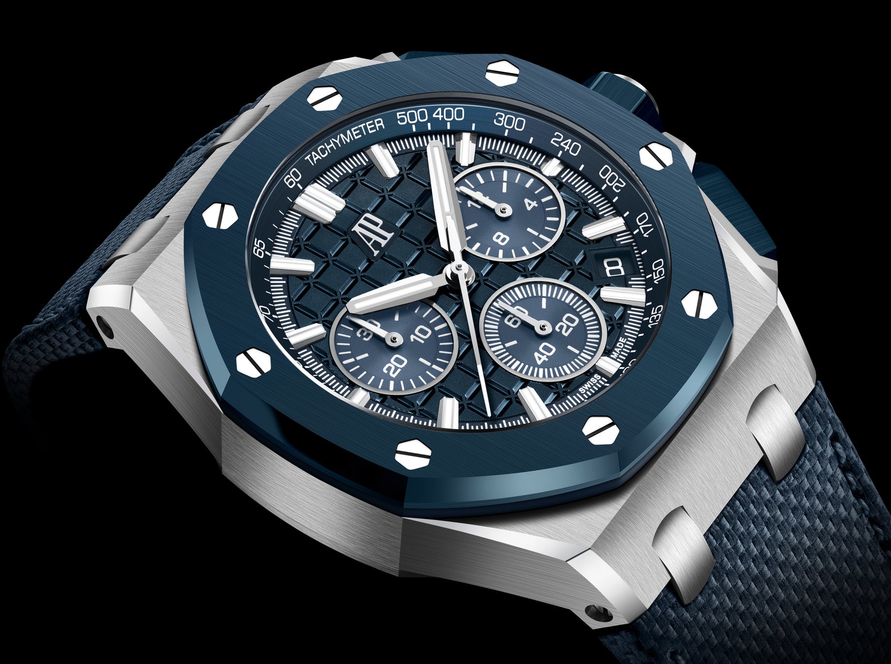深いブルーのセラミックが「ロイヤル オーク」と「ロイヤル オーク オフショア」コレクションの3つのモデルを彩る