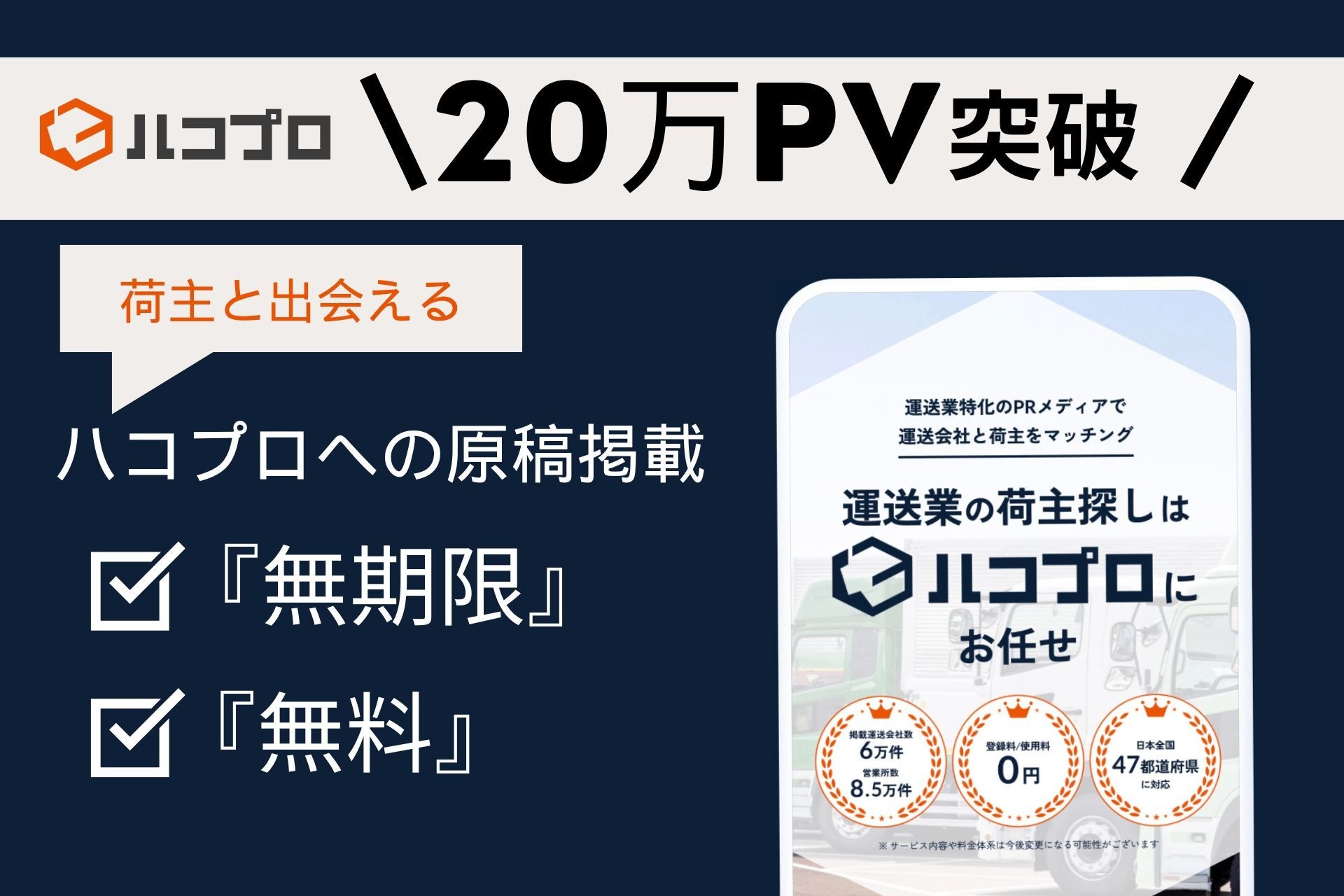無期限で掲載無料に!運送業界を支える『ハコプロ』がさらなる発展へ