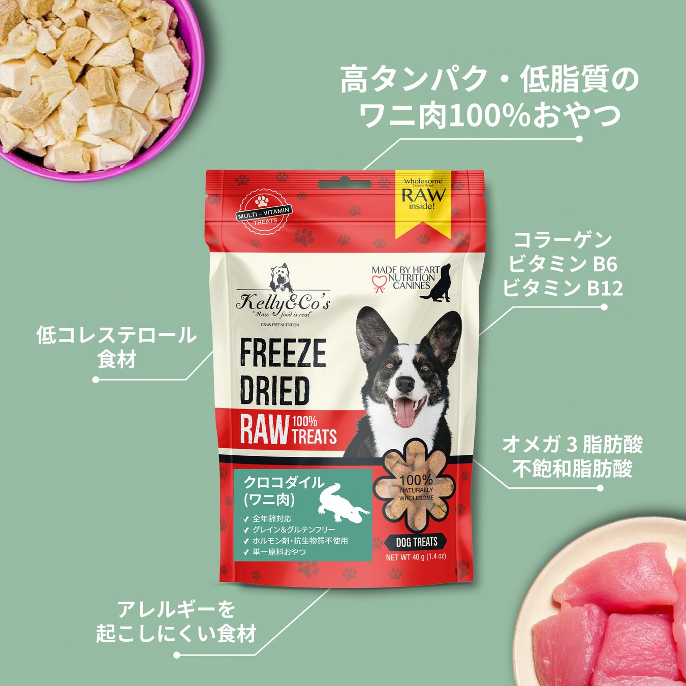 Kelly&Co's フリーズドライ RAW TREATS(犬・猫用単一原料おやつ)クロコダイルマッスルミート 40g:1,900円(税込み)