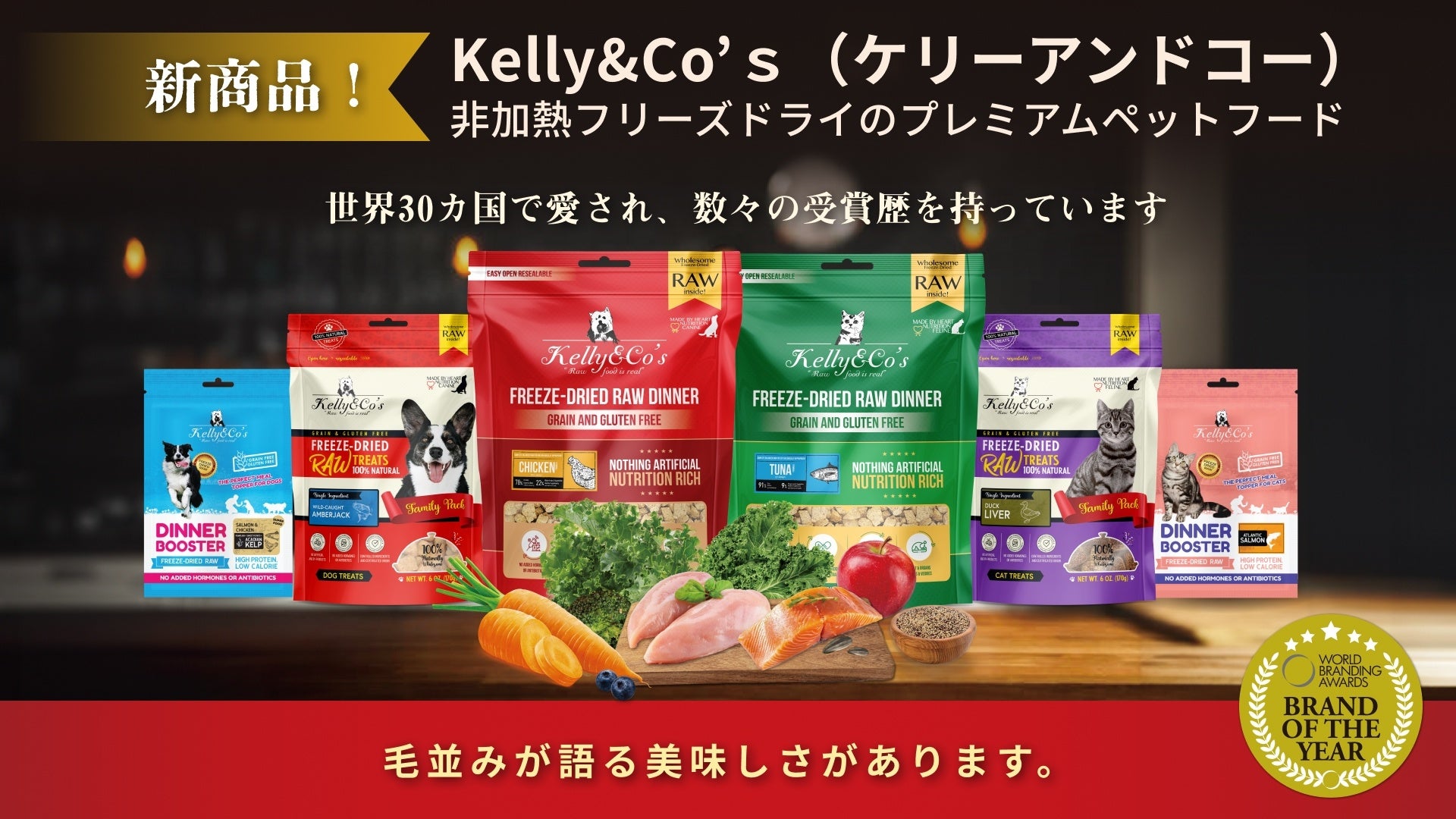 Kelly&Co's(ケリーアンドコー)は世界30カ国で愛されるフリーズドライペットフードブランドで、博士号を取得した動物栄養学の専門家とブレンダーが開発したレシピをHACCP認証を得た自社工場で製造しております。自然の栄養分と美味しさを追求したレシピはAAFCO・FEDIAF・CFIAの基準を満たし、その品質は世界中の様々な賞で評価されています。