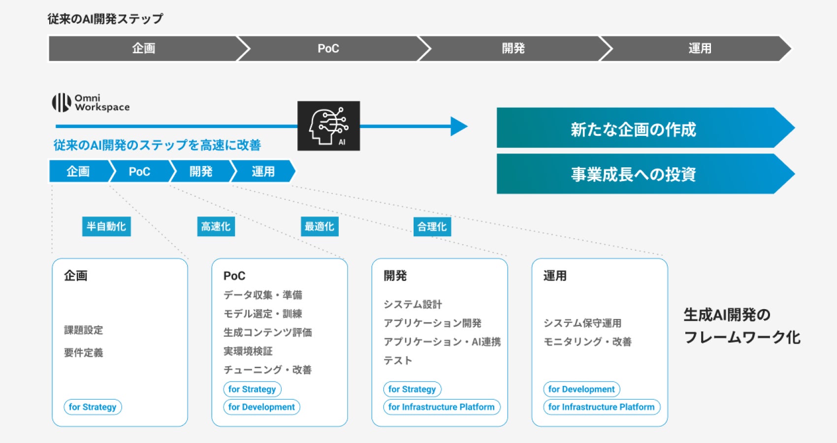 BLUEISH社は、「私たちの価値創造で企業が成長し、それに関わる人々に豊かさが循環していく社会を実現する」というビジョンのもと、「すべての業務プロセスをデジタル化し、唯一無二の価値を提供する」というミッションを掲げ、AIワークフロー「OmniWorkspace」を中心としたAIソリューションを展開しています。従来のPoCだけで終わらないために、大手BPO企業が既に標準化した業務マニュアルやノウハウを活用し、短期間で高い完成度のAI導入を実現。企業の基幹業務から周辺業務まで、エンドツーエンドでプロセスを最適化・自動化し、本番運用後も継続的にアップデートできる体制を整えています。これにより、単なる業務効率化にとどまらず、企業の競争力強化や新たな価値創出に貢献する、“唯一無二”のAIプラットフォームを目指しています。