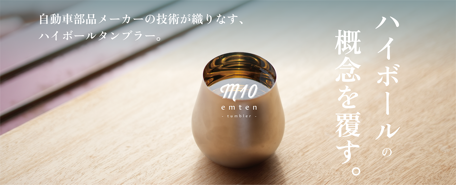 どんな食事とも合わせやすいハイボールは日本において食中酒として広く楽しまれ、ジャパニーズウイスキーの市場拡大なども追い風となり、今や不動の人気を誇っています。手軽に楽しめるハイボールですが、ウイスキーの種類や配合、作り方によって味わいは千差万別。もし、こだわりのウイスキーを飲むとき、ひと手間を加えるだけで、別次元のハイボールになるとしたら。そのハイボールで、日常の中のちょっとした贅沢時間を過ごしてほしい。emten - tumblerにはそんな想いが込められています。