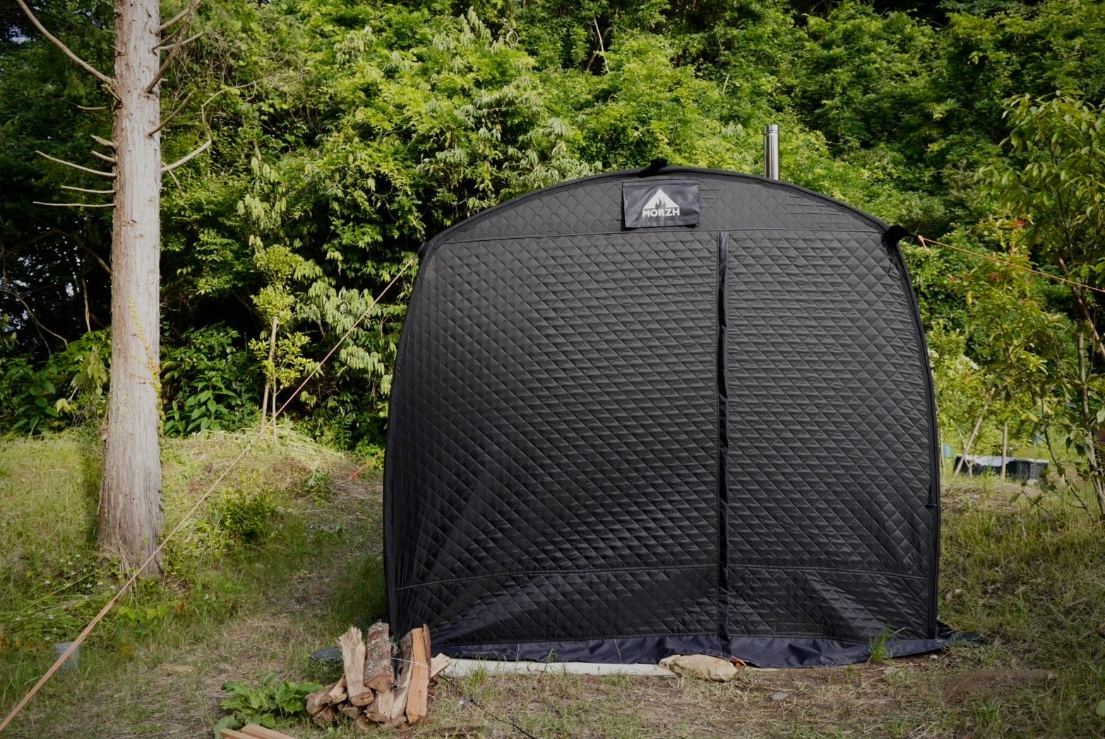 静かな森の中に設置されたサウナは、鳥のさえずりや木々のざわめきを感じながらリラックスできる贅沢な空間です。