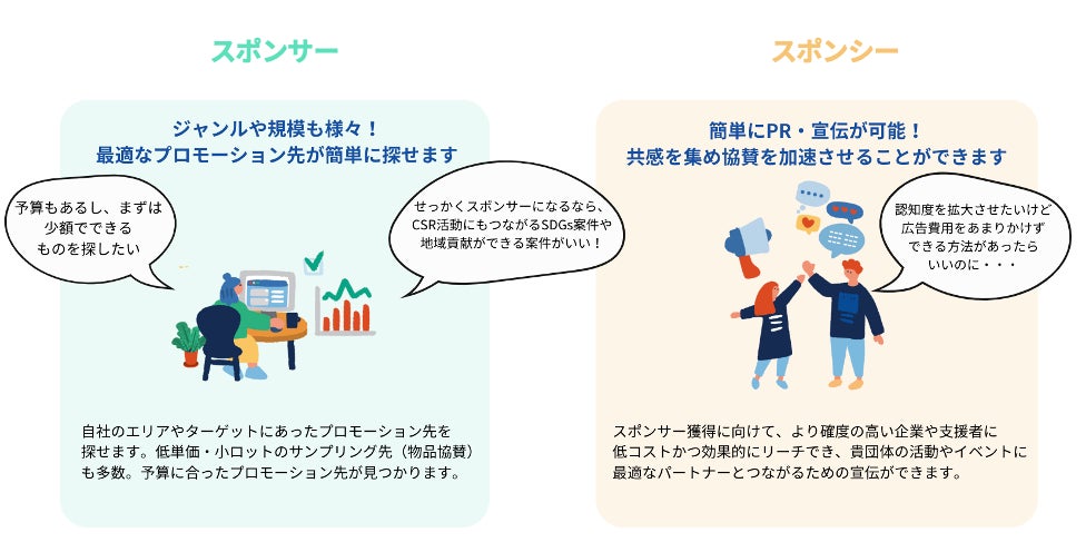 ・協賛を募集する事業者、⾃治体・イベント・NPO団体等:スポンシー