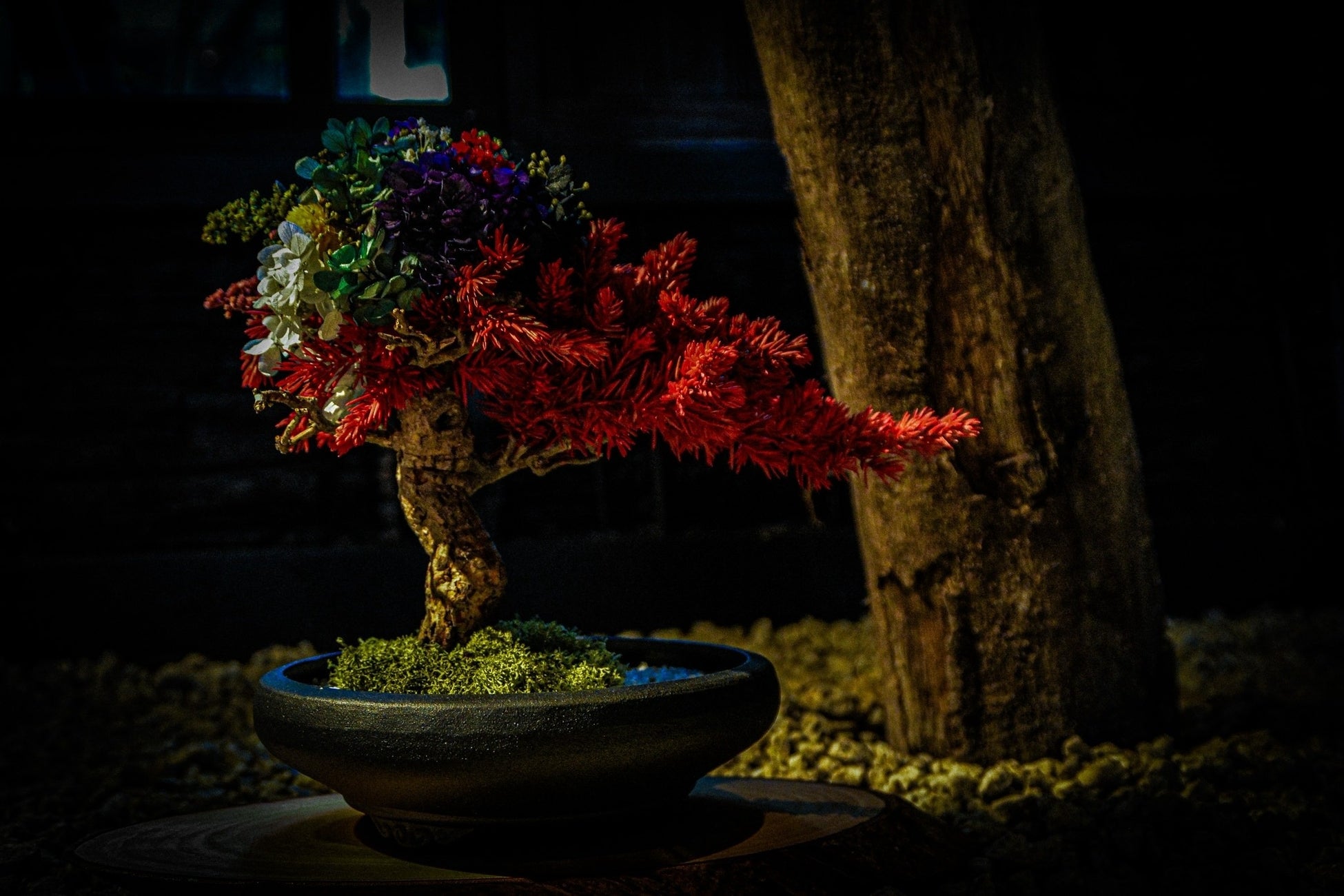 さらにWithers Bonsaiは、伝統的な盆栽の概念にとらわれず、花びらや色彩を加えるなどの表現によって、従来の枠を超えた進化的な美を創出しています。