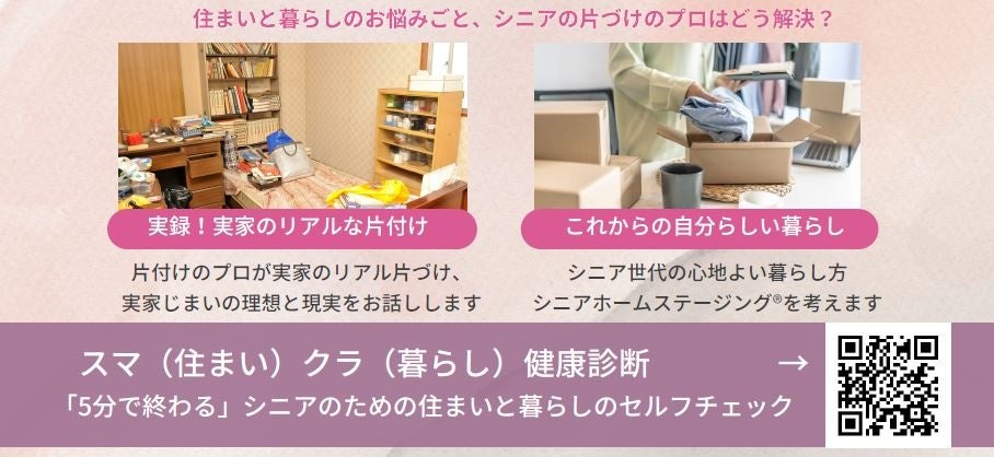 そこで、シニア世代の片づけの悩みなど住まいと暮らしのお悩みごとを専門家と一緒に考えるスマクラ相談会を2025年1月24日(金)にセミナーと相談会を開催いたします。