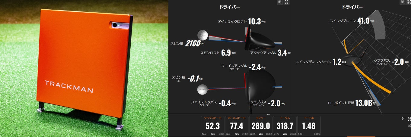 世界トップツアープレイヤー1000人がスウィング解析のために使用する「世界一正確」とされるレーダー弾道測定器「TrackMan(トラックマン)」。弾道ミサイル追撃用の軍事レーダーを使い、ボールの飛距離や回転数、クラブの軌道、フェース面など26項目の解析が可能です。
